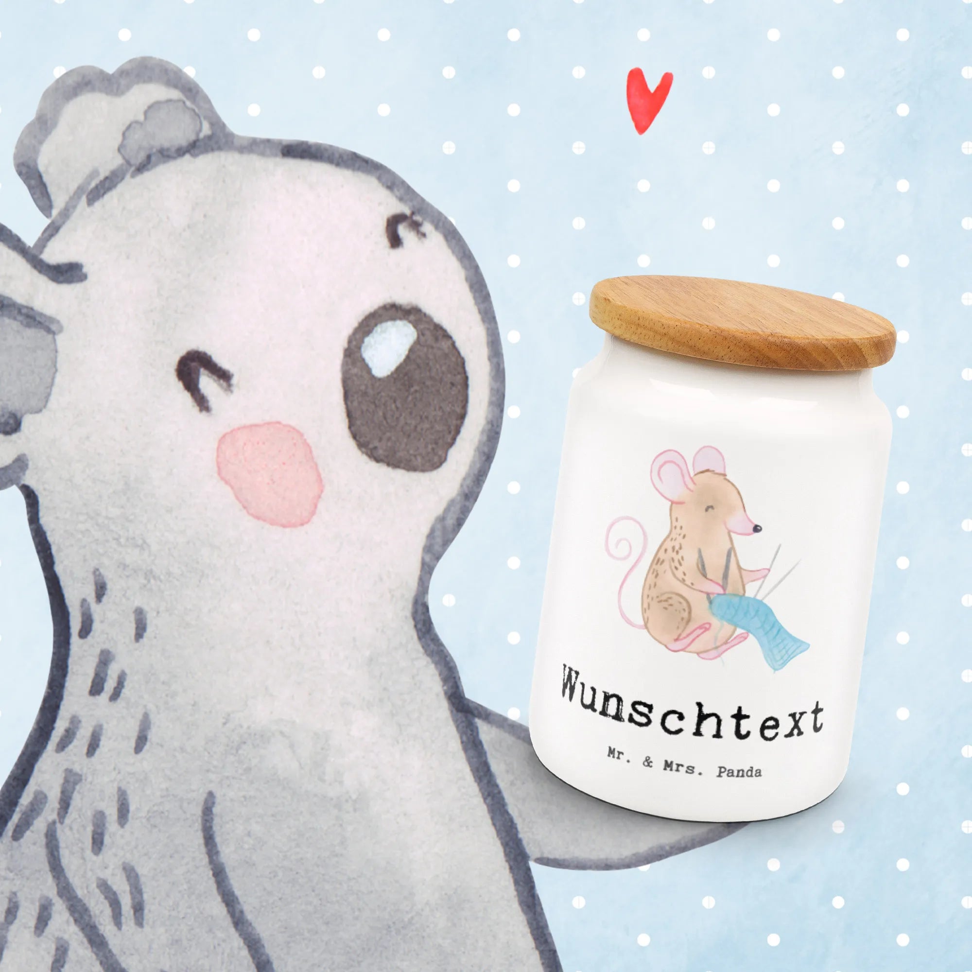 Die personalisierte Vorratsdose "Maus Stricken Tage" von Mr. & Mrs. Panda ist das perfekte Geschenk für alle Strickbegeisterten und DIY-Fans in deinem Leben! Diese liebevoll gestaltete Keramikdose ist nicht nur ein echter Hingucker, sondern bietet auch die Möglichkeit zur Personalisierung mit deinem Wunschtext oder Namen.
