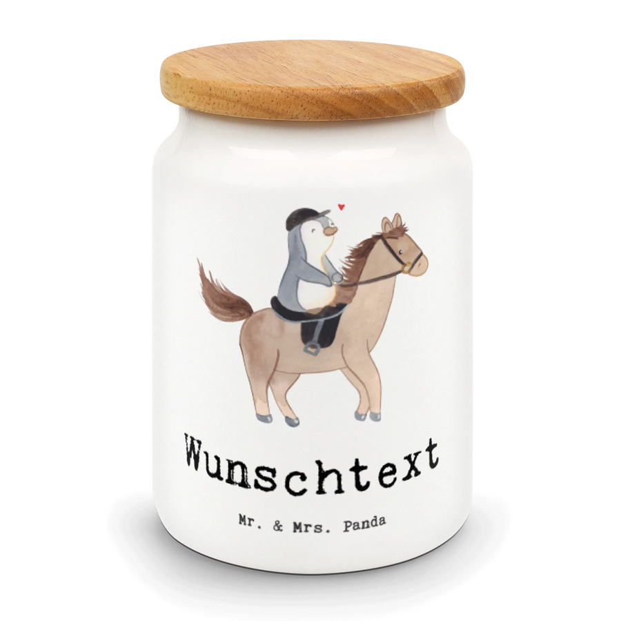 Suchst du das perfekte Geschenk für einen Pferdeliebhaber oder Reitsportfan? Dann ist die liebevoll gestaltete personalisierte Vorratsdose mit dem Motiv "Pferd Reiten Tage" von Mr. & Mrs. Panda genau das Richtige!
