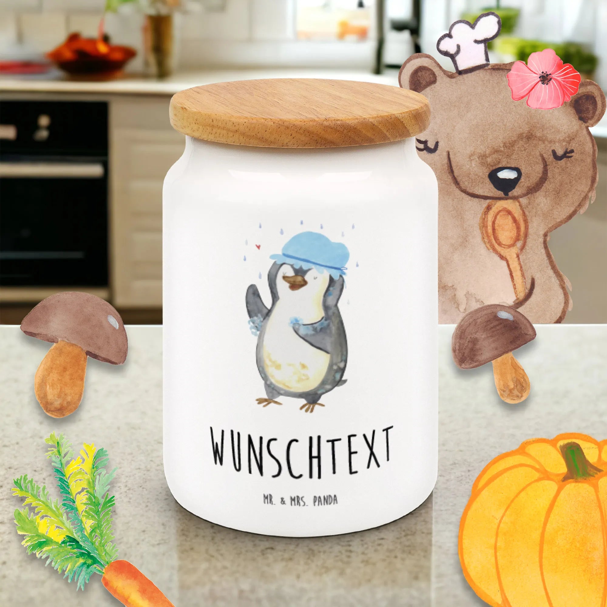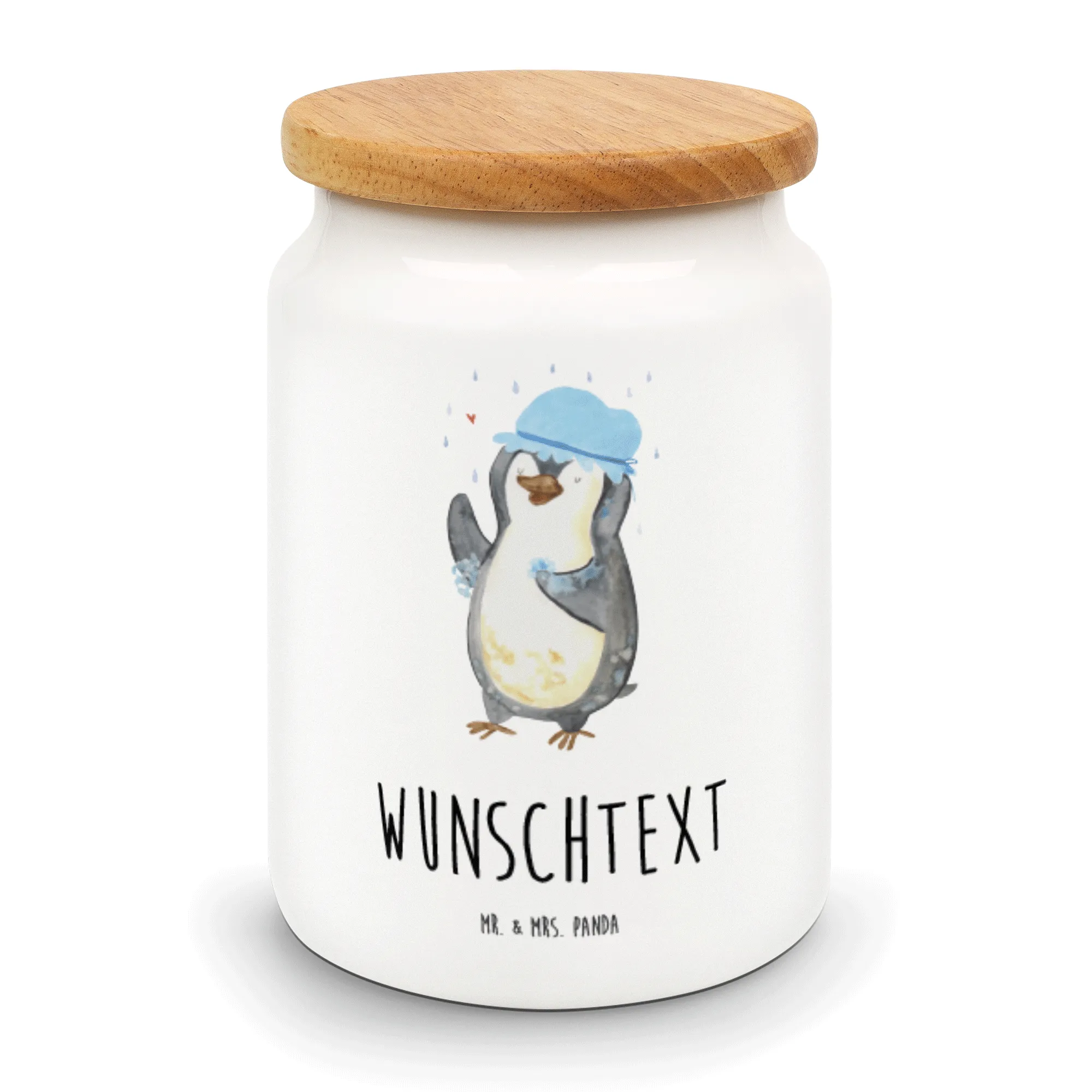 Personalisierte Vorratsdose Pinguin duscht