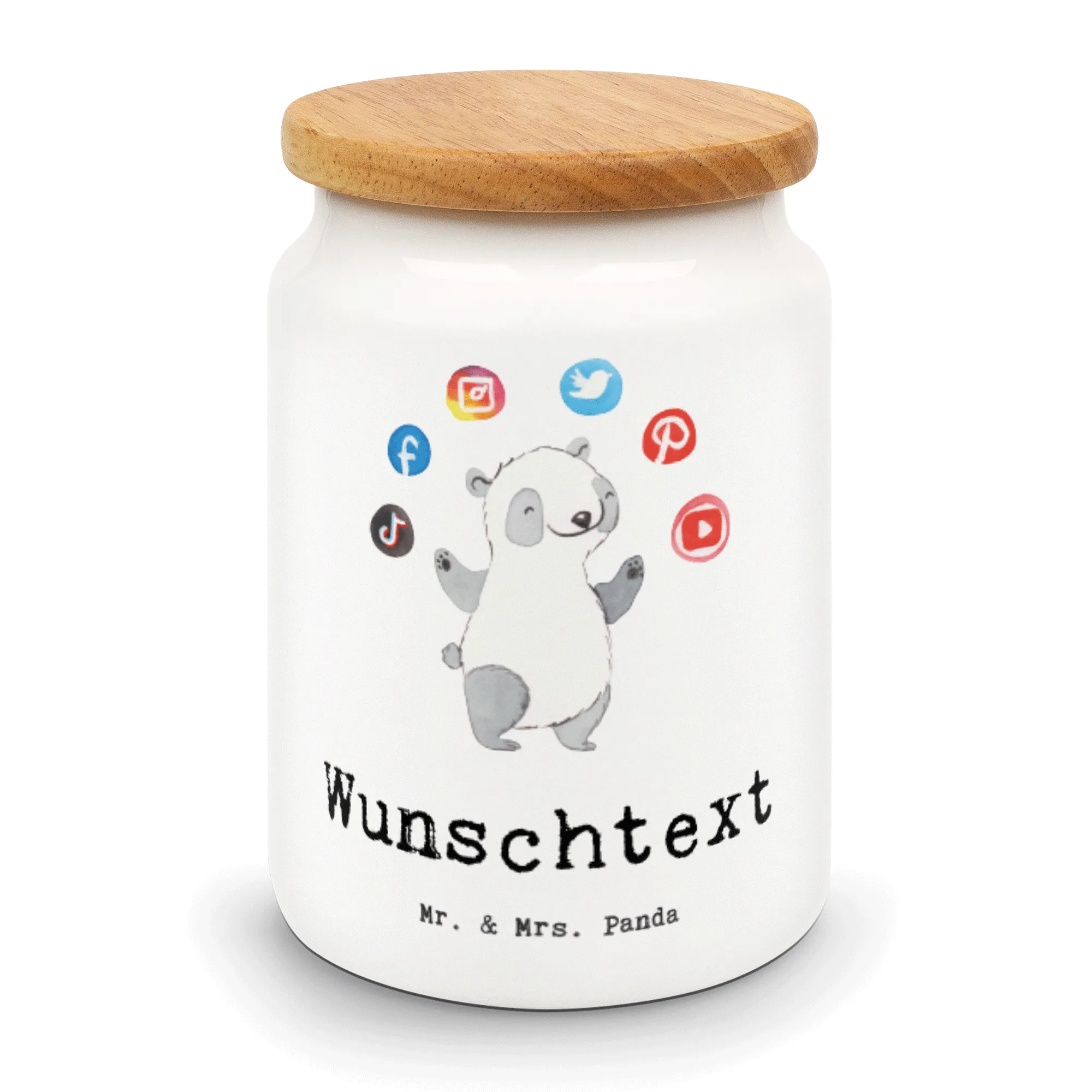 Die personalisierte Vorratsdose "Social Media Manager mit Herz" von Mr. & Mrs. Panda ist das perfekte Geschenk für alle, die im Bereich der sozialen Medien arbeiten. Egal, ob zum Berufsabschied, zum Jubiläum oder einfach nur als kleine Aufmerksamkeit – diese liebevolle Keramikdose begeistert mit einem einzigartigen Design.
