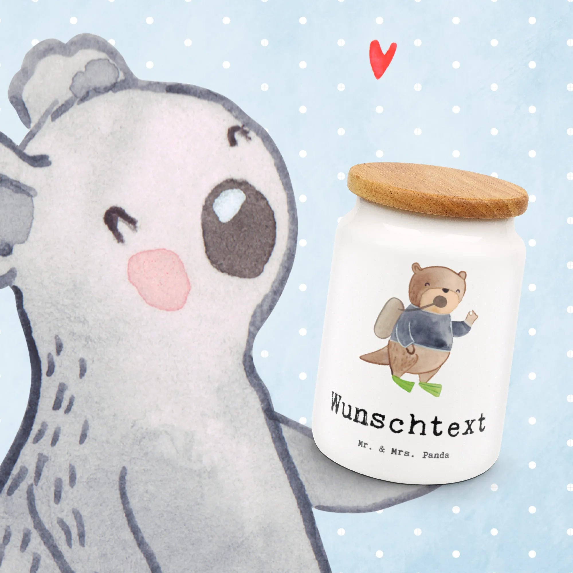 Die perfekte Geschenkidee für Tauchlehrer und Tauchliebhaber! Unsere personalisierte Vorratsdose mit dem liebevollen Motiv 'Tauchlehrer mit Herz' ist nicht nur funktional, sondern auch ein echter Hingucker.