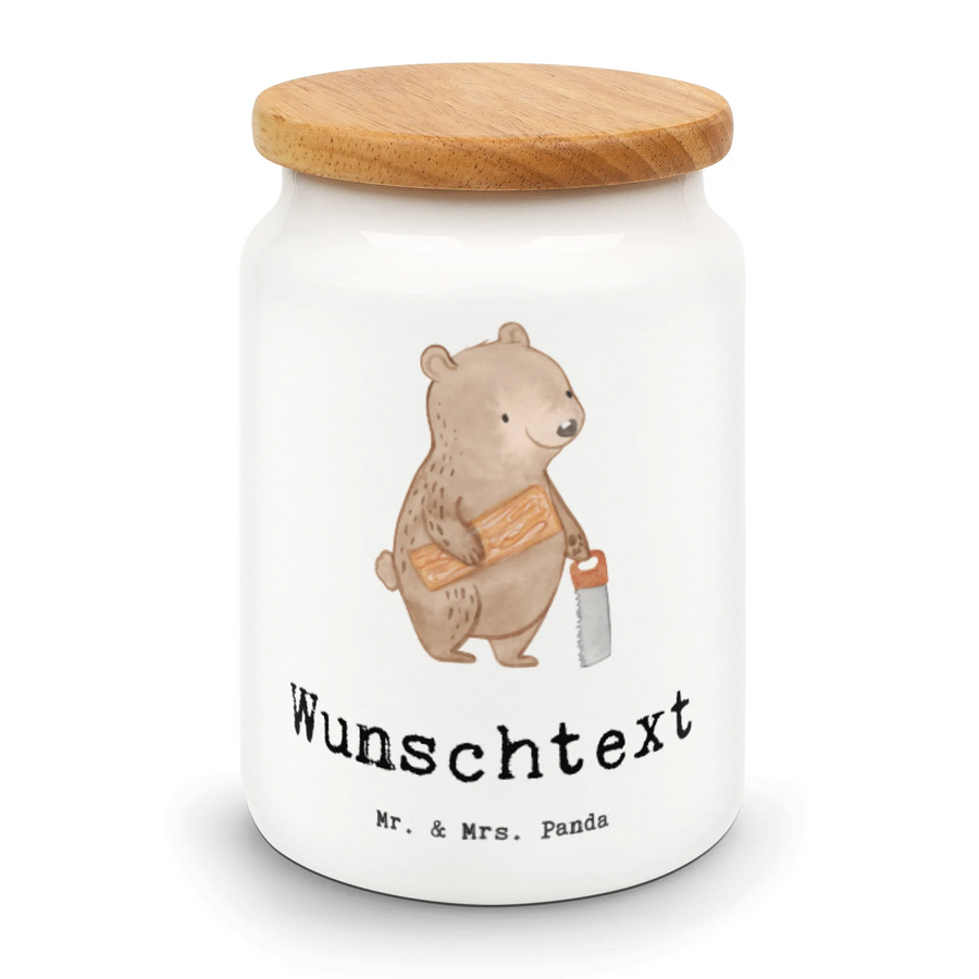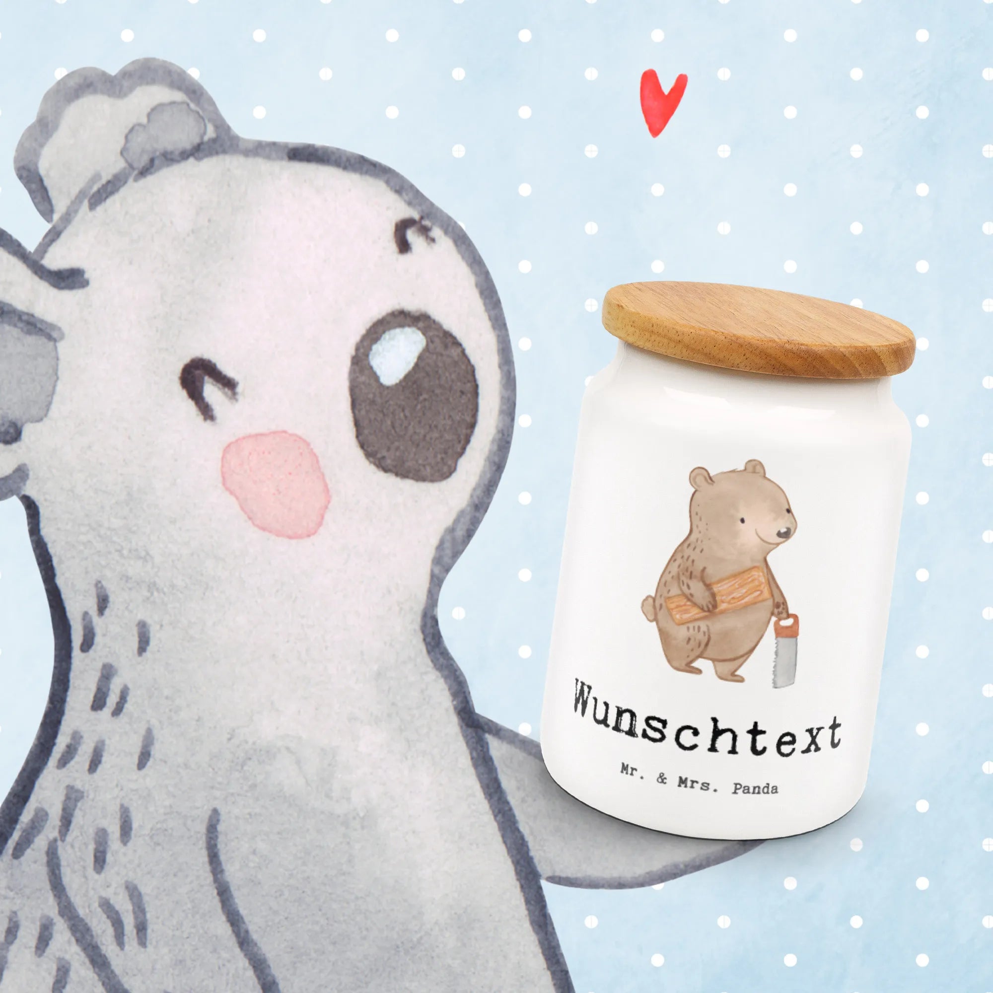 Die personalisierte Vorratsdose "Tischler mit Herz" aus der liebevollen Berufe-Kollektion von Mr. & Mrs. Panda ist das perfekte Geschenk für Tischler, egal ob zum Berufsstart, zur Beförderung, zum Jubiläum oder als Abschiedsgeschenk. Diese wunderschöne Keramikdose mit einem einzigartigen und herzlichen Design wird zum Highlight in jeder Küche oder Werkstatt.