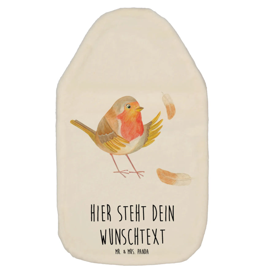 Personalisierte Wärmflasche Rotkehlchen mit Federn