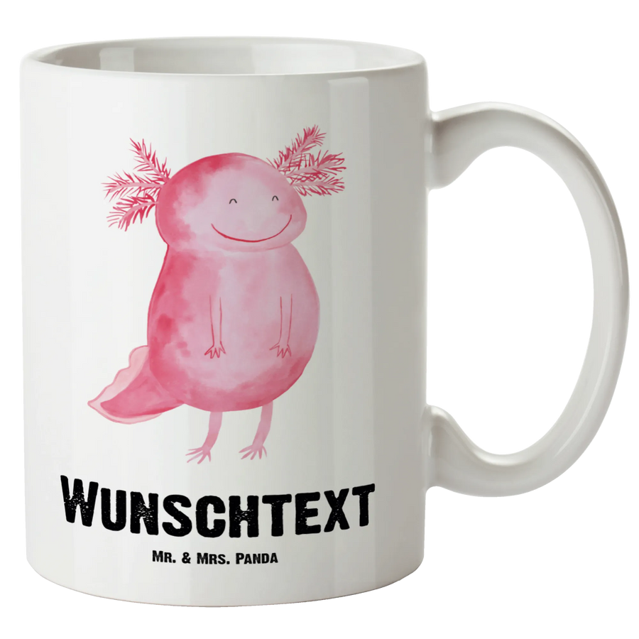 Die personalisierte XL Tasse Axolotl glücklich von Mr. & Mrs. Panda ist das perfekte Geschenk für alle, die Freude und gute Laune lieben. Mit ihrem liebevoll gestalteten Axolotl-Motiv und dem motivierenden Spruch "Das Leben ist zu kurz für schlechte Laune." zaubert sie jedem ein Lächeln ins Gesicht.