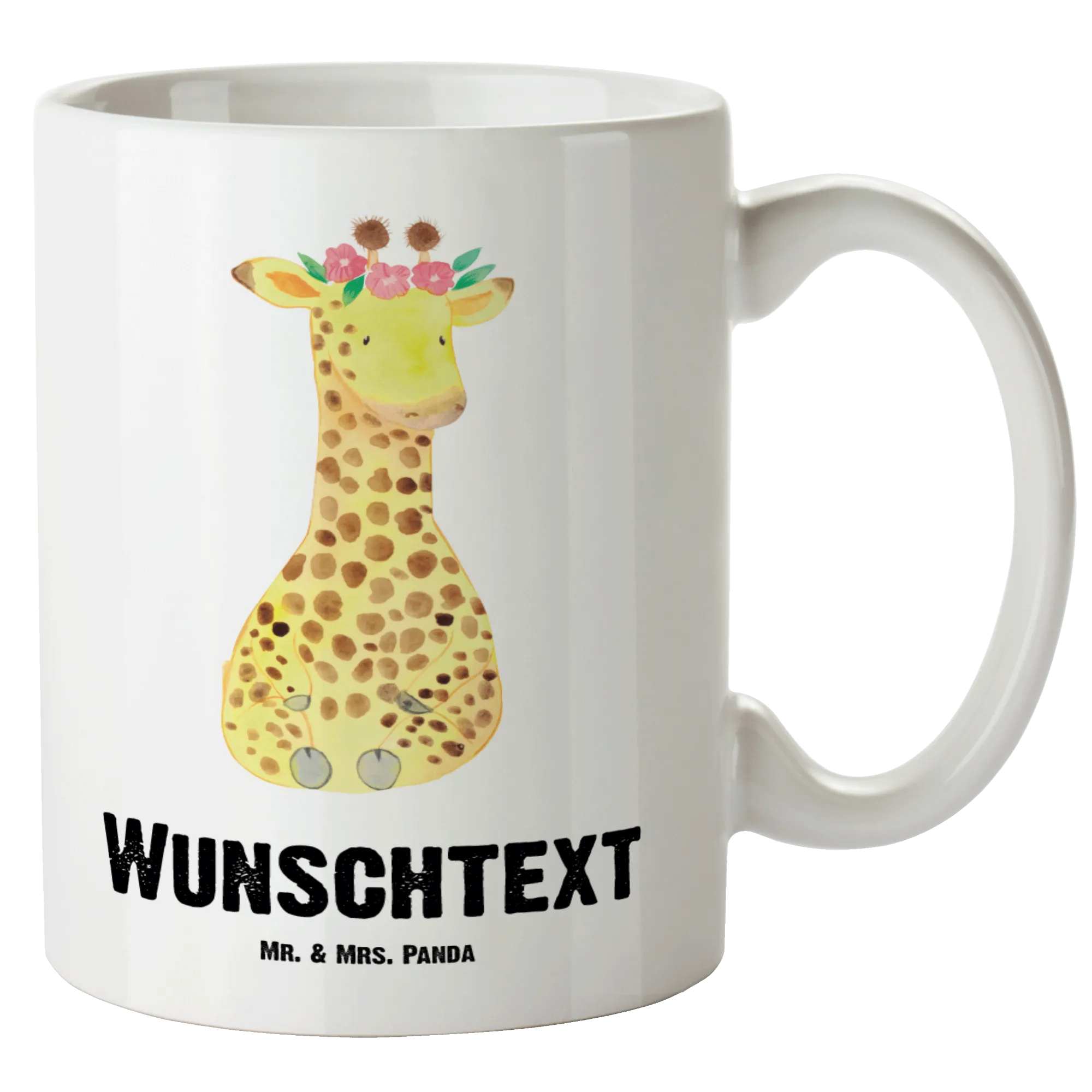 Personalisierte XL Tasse Giraffe Blumenkranz