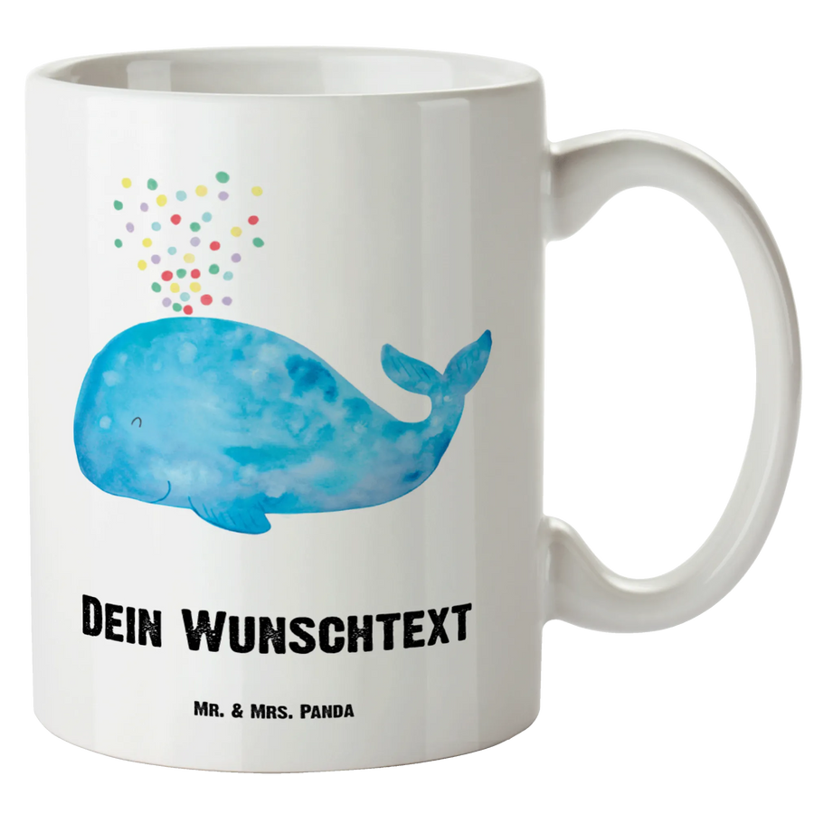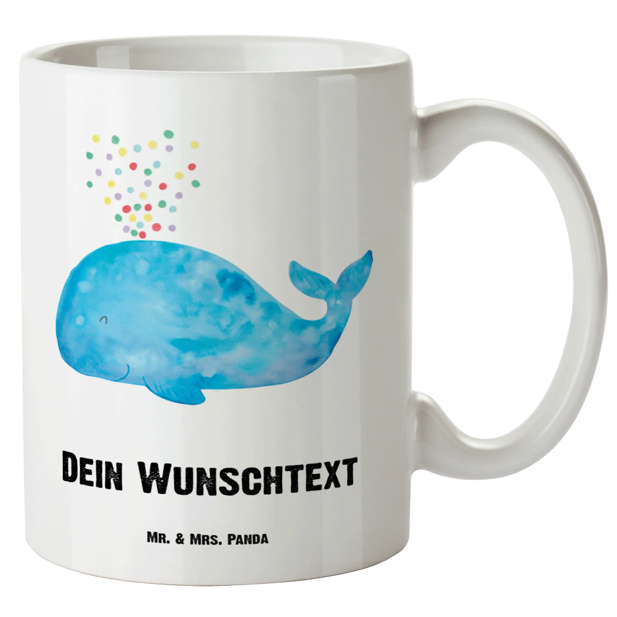 Entdecke die perfekte Geschenkidee mit unserer personalisierten XL Tasse im bezaubernden Wal Konfetti Design von Mr. & Mrs. Panda! Diese Tasse ist nicht nur riesig, sondern auch ein Zeichen für Freude und neues Leben. Mit einem Füllvolumen von 500 ml ist sie ideal, um deinen Lieblingskaffee, Tee oder andere Getränke stilvoll zu genießen.