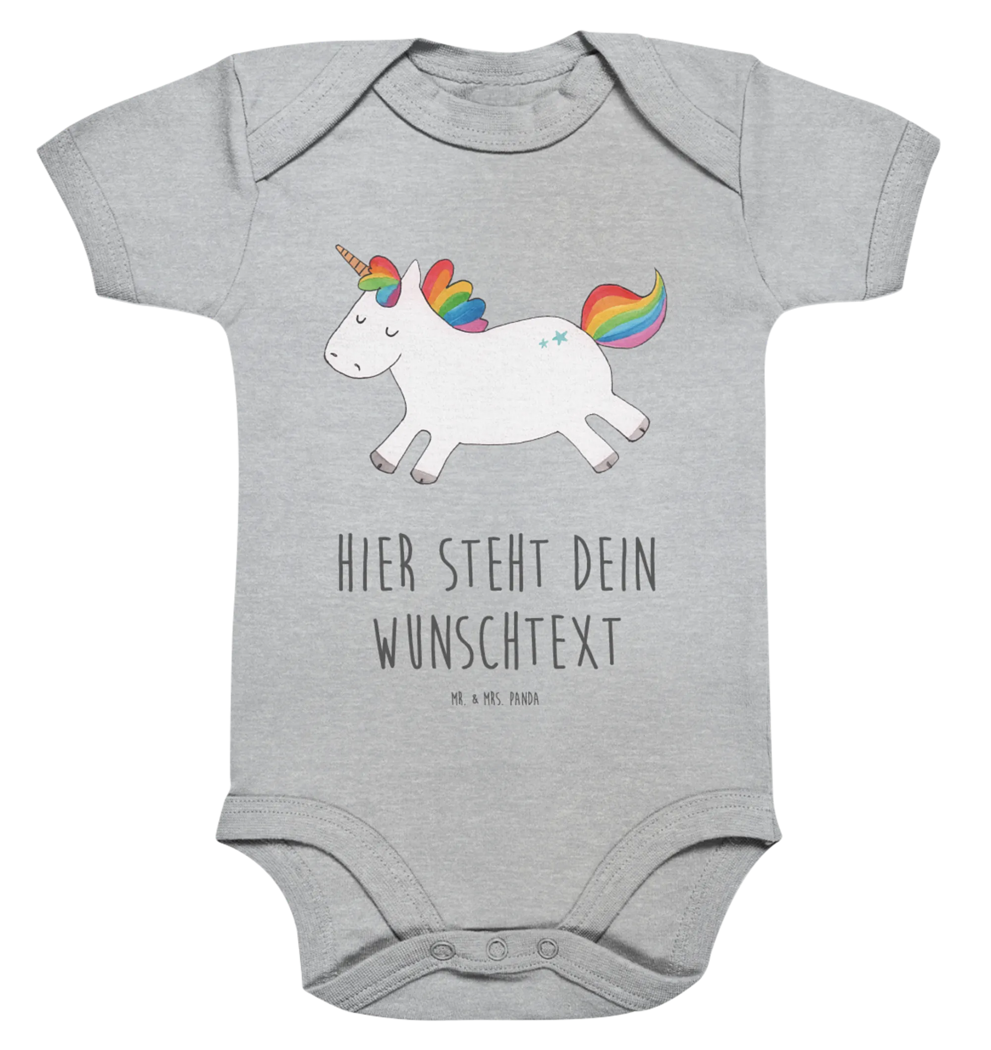 Der personalisierte Baby Body Einhorn Happy aus der bezaubernden Einhorn-Kollektion von Mr. & Mrs. Panda ist nicht nur ein unverzichtbares Kleidungsstück für dein kleines Wunder, sondern auch ein Herzstück in jedem Babyoutfit!