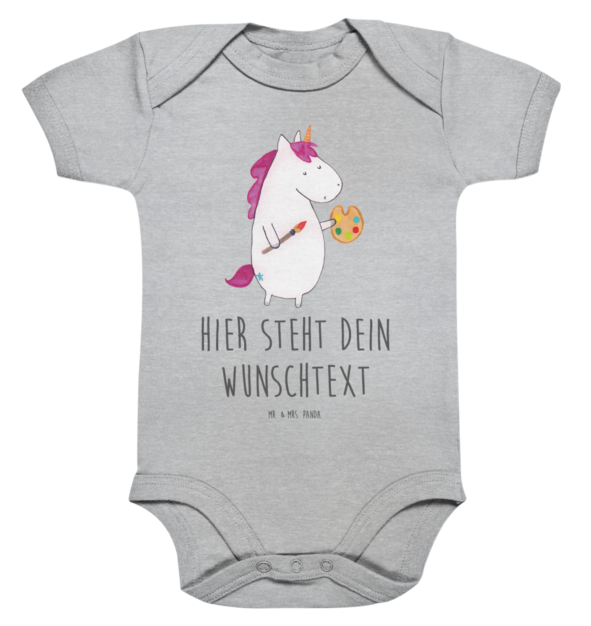 Du bist auf der Suche nach dem perfekten Geschenkt für ein kreatives Baby? Dann haben wir genau das Richtige für dich! Unser personalisierter Baby Body mit dem zauberhaften Motiv „Einhorn Künstler“ aus der einzigartigen Einhorn-Kollektion von Mr. & Mrs. Panda ist die perfekte Wahl!