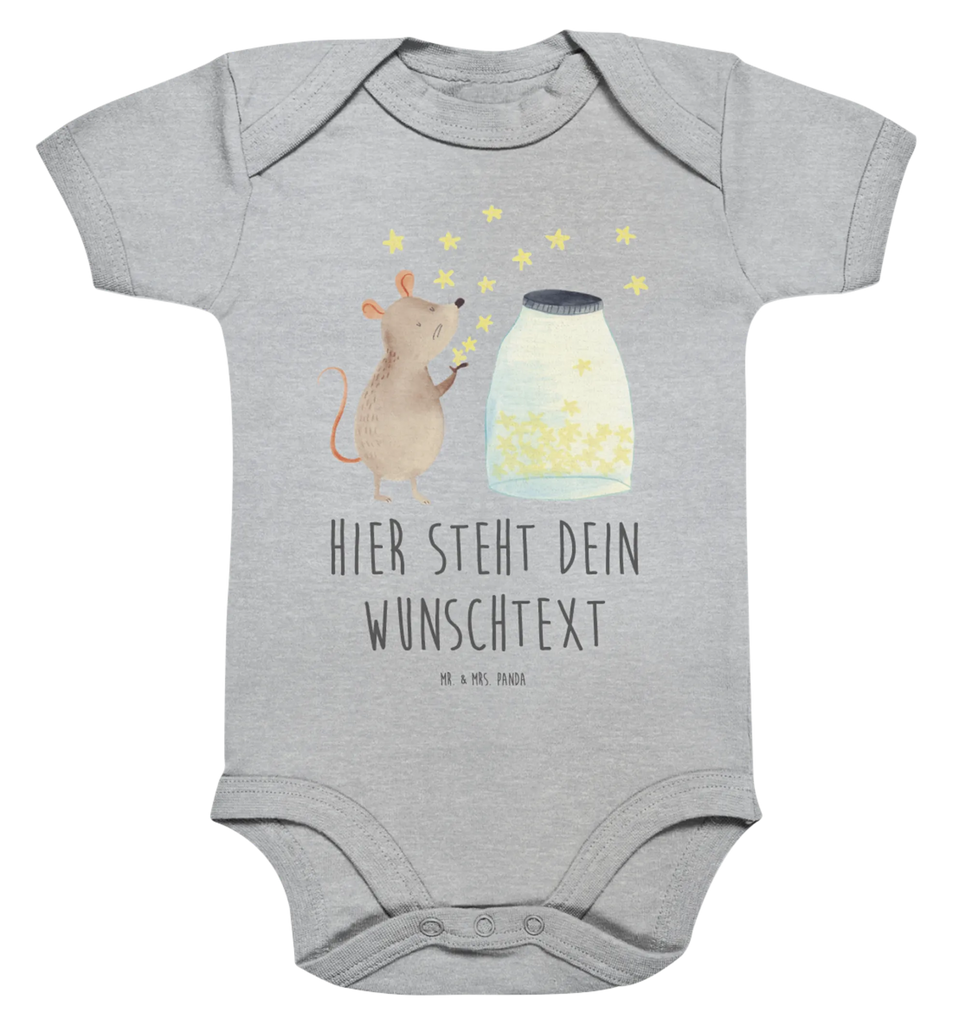 Der personalisierte Baby Body mit dem süßen Motiv "Maus Sterne" aus der Small World Kollektion von Mr. & Mrs. Panda ist das perfekte Geschenk für alle frischgebackenen Eltern und ihre kleinen Lieblinge. Hierbei handelt es sich um einen hochwertigen Baby Body, der nicht nur mit Liebe, sondern auch mit einem tiefen Sinn für Individualität gestaltet wurde. Die niedliche Maus, die vor einem Glas funkelnder Sterne sitzt, träumt von Abenteuern und lässt die Sterne in die Freiheit fliegen.