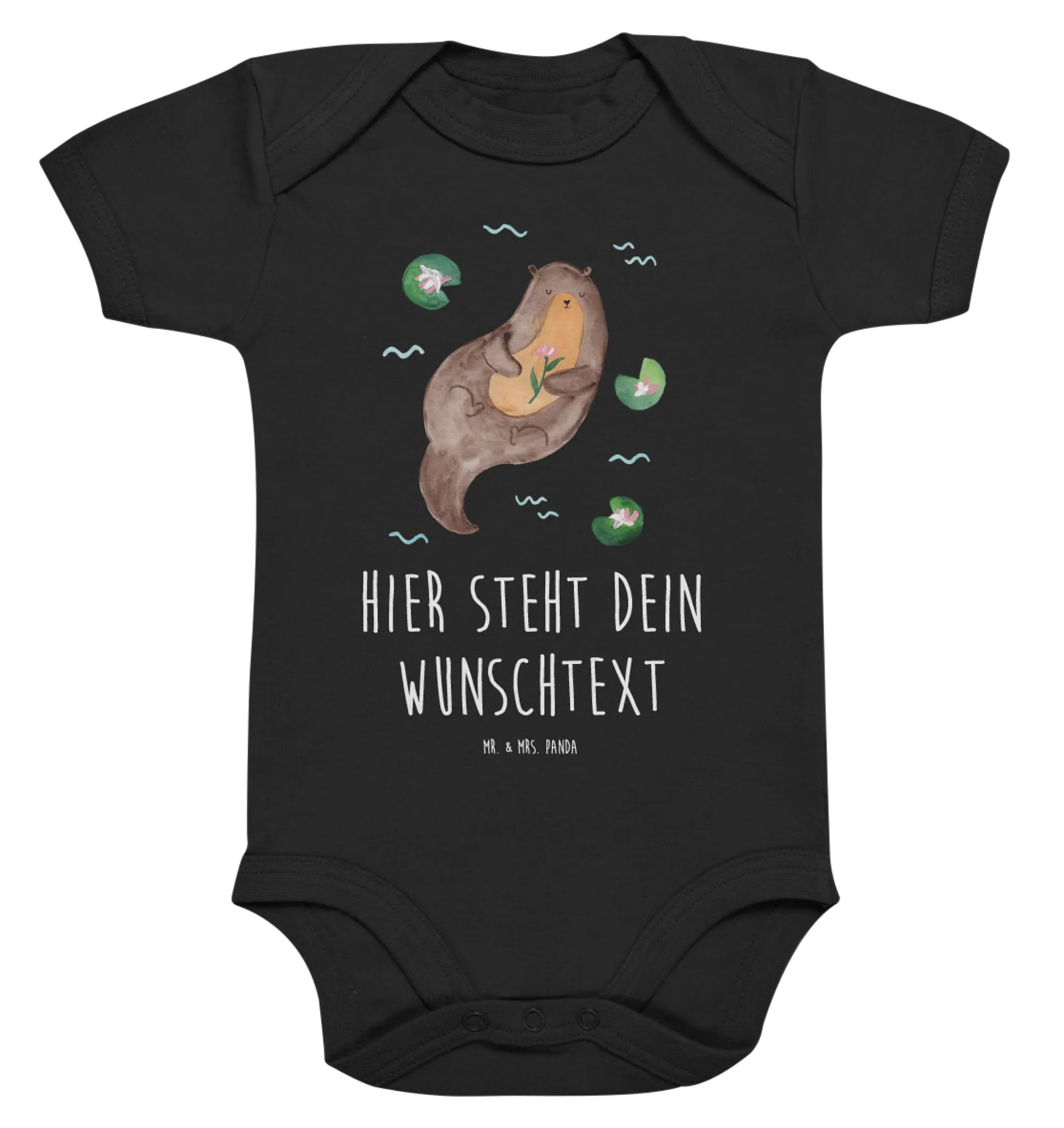 Willkommen in der wunderbaren Welt der Otter - Kollektion von Mr. & Mrs. Panda! Unser personalisierter Babybody mit dem Motiv 'Otter mit Seerose' ist das ultimative Geschenk zur Geburt oder für die nächste Babyparty. 🦦🌸