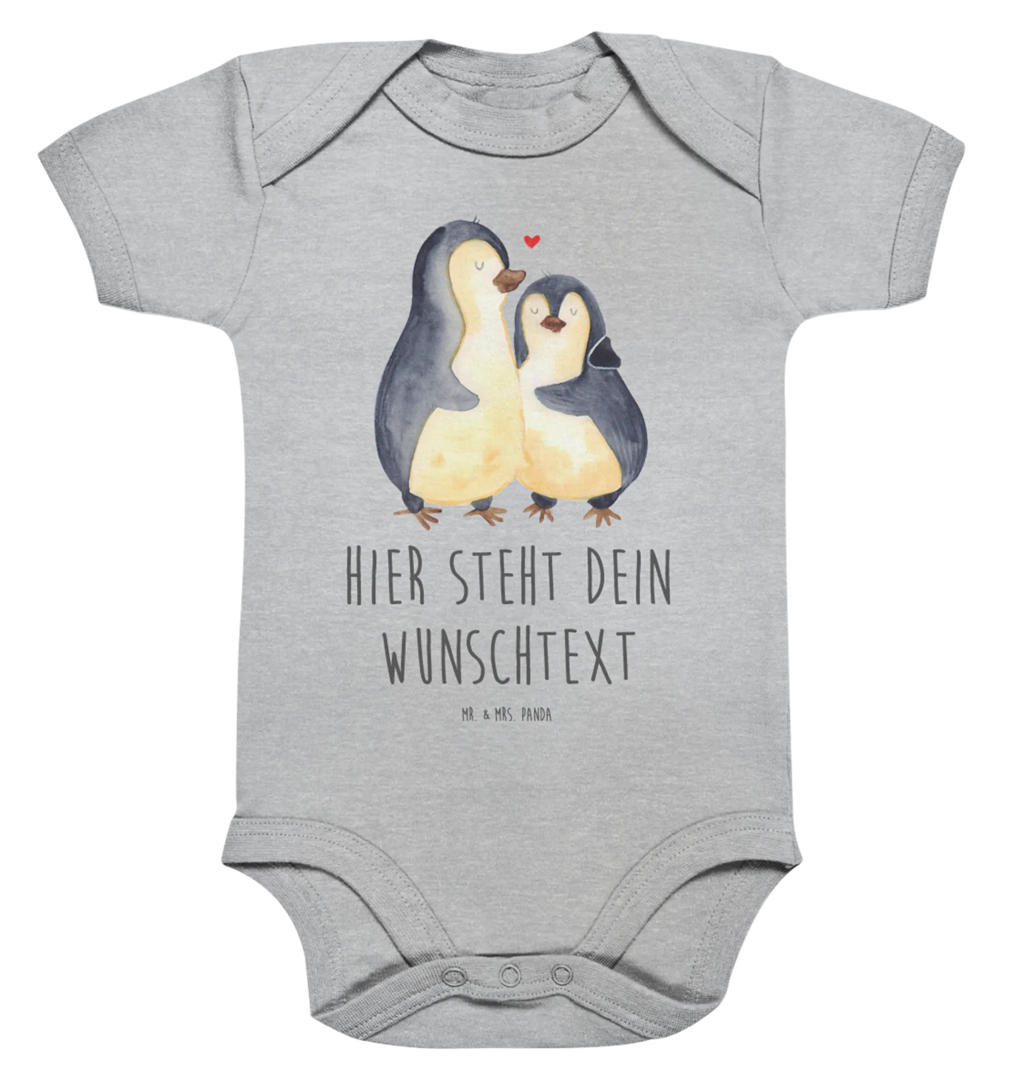 Der personalisierte Baby Body mit dem liebevollen Motiv 'Pinguin umarmend' aus der Pinguin - Kollektion von Mr. & Mrs. Panda ist das perfekte Geschenk für frischgebackene Eltern und ihre kleinen Schätze. Dieses bezaubernde Design zeigt zwei Pinguine, die sich liebevoll umarmen, und verkörpert somit die Wurst voller Wärme, Zuneigung und Freundschaft.