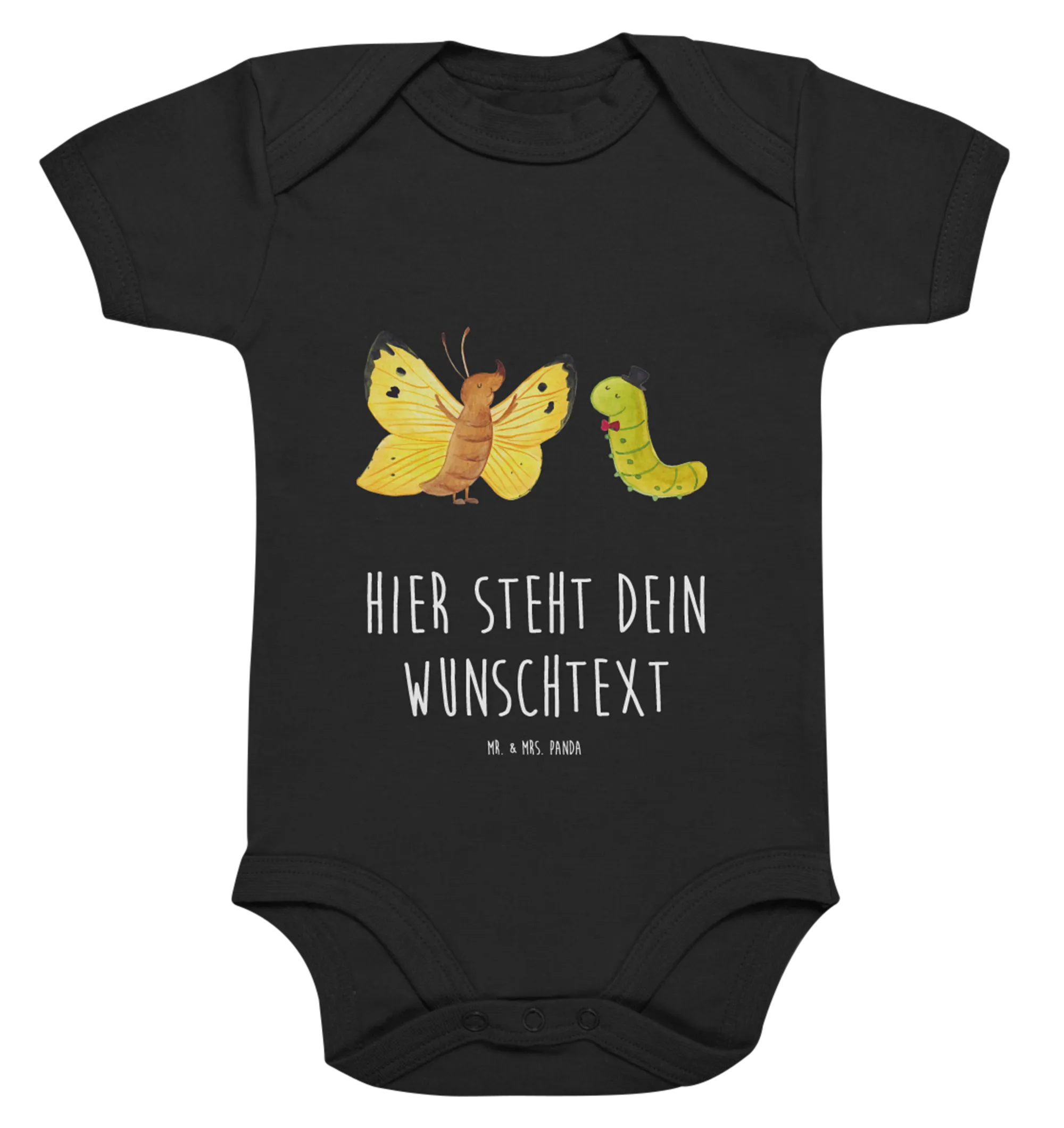 Wähle den personalisierten Babybody Raupe & Schmetterling von Mr. & Mrs. Panda – ein Stück, das für all die besonderen Momente im Leben deines kleinen Wunders steht!