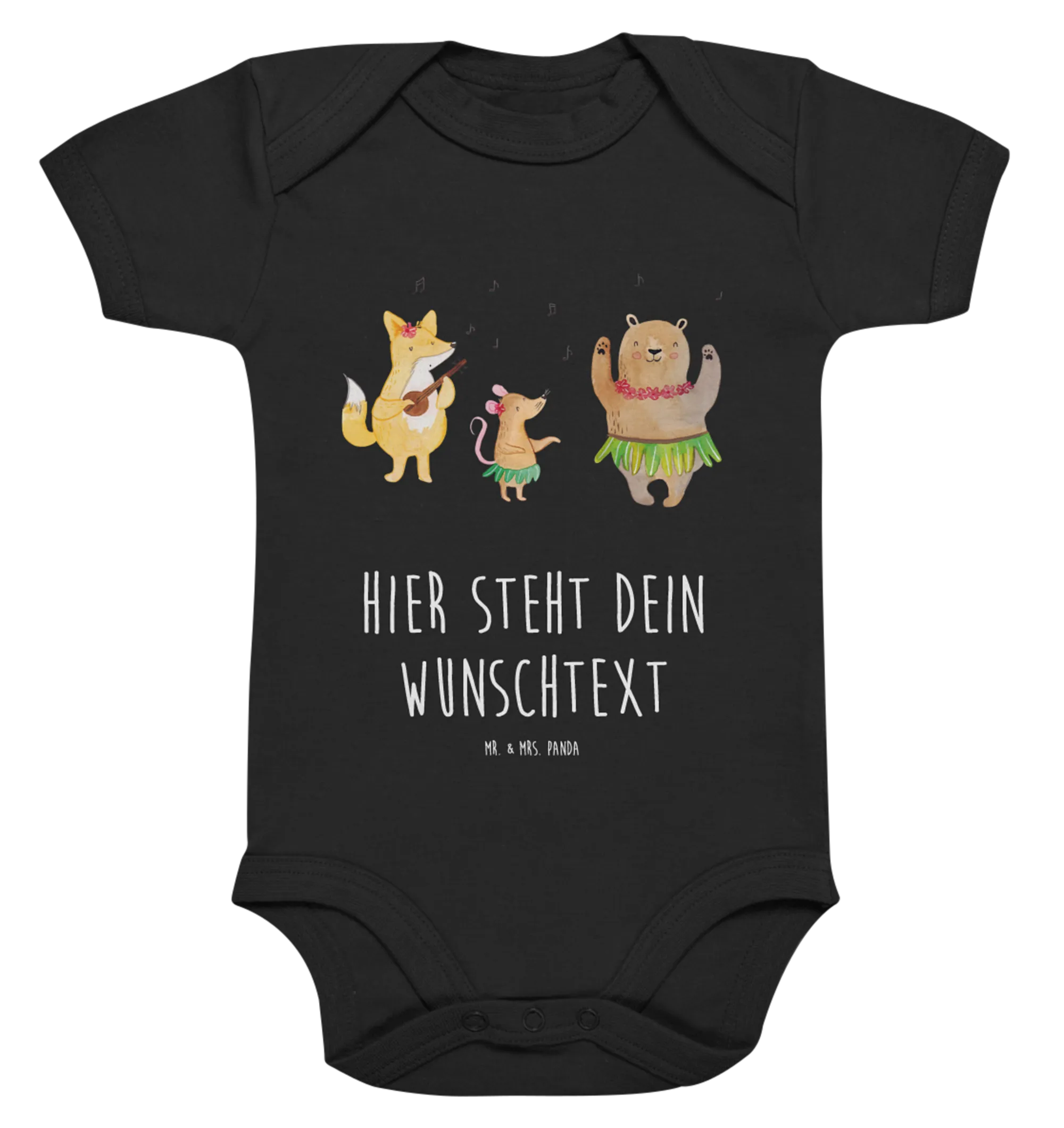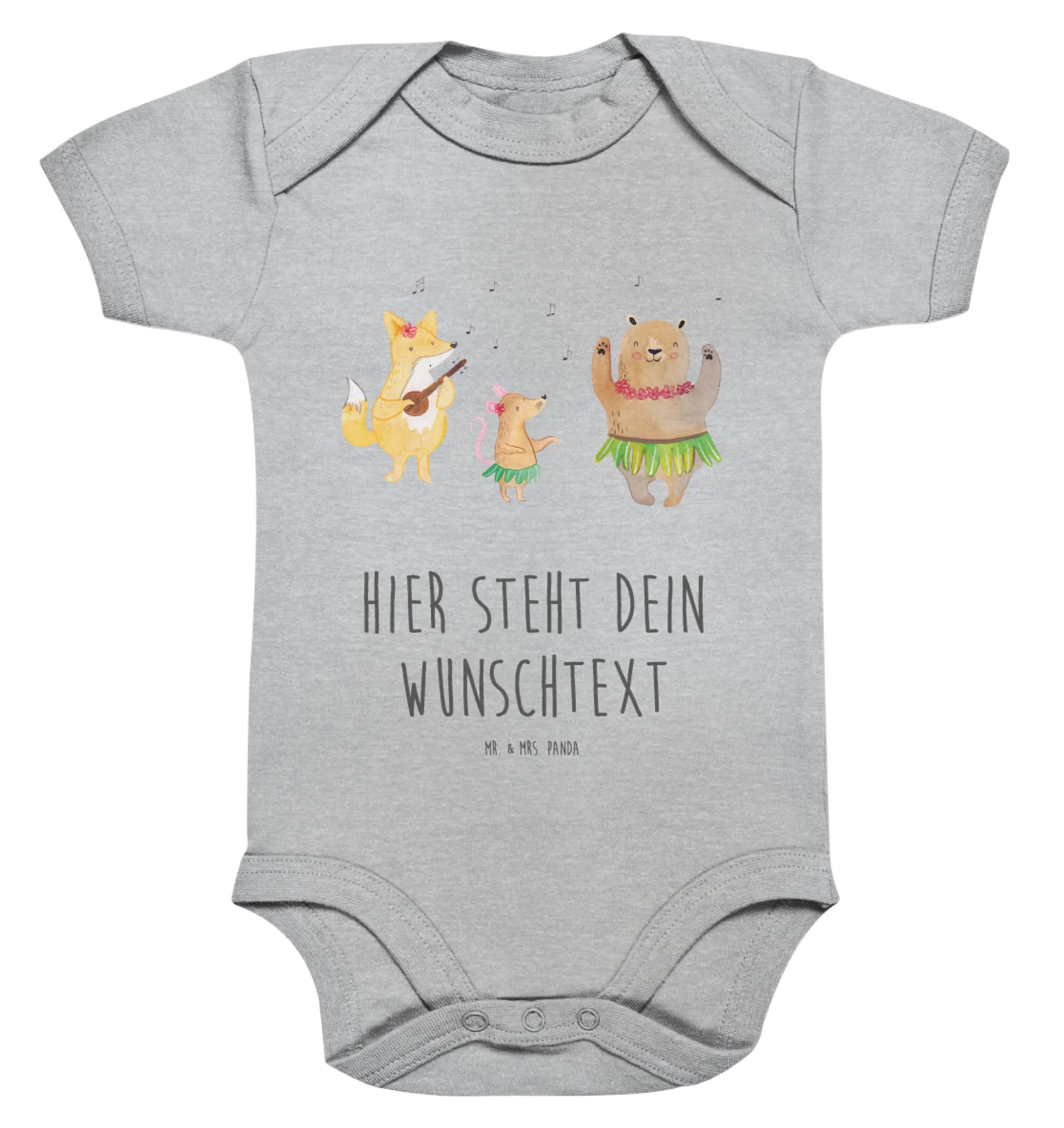 Egal ob beim Spiel auf der Wiese, im Urlaub am Strand oder einfach beim Kuscheln zu Hause – dein Baby wird mit diesem Body jederzeit stilvoll gekleidet sein. Lass diesen Sommer unvergesslich werden mit dem personalisierten Baby Body "Waldtiere Aloha" von Mr. & Mrs. Panda!