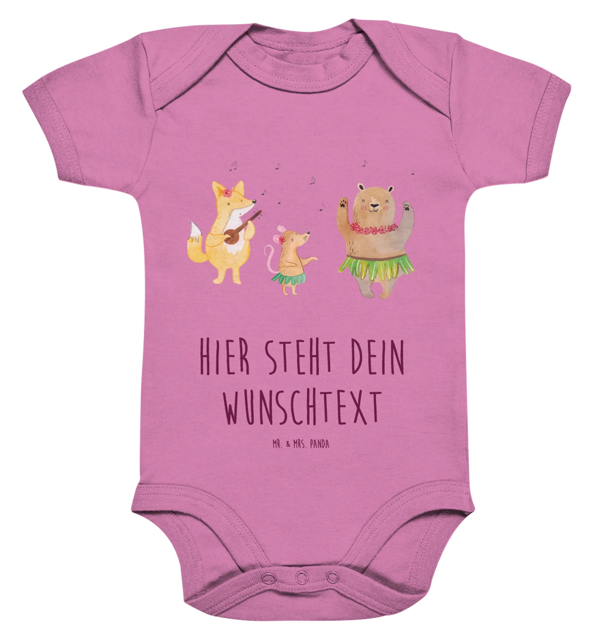 Entdecke den perfekten personalisierten Baby Body mit dem zauberhaften Motiv "Waldtiere Aloha" aus der Small World Kollektion von Mr. & Mrs. Panda! Dieser niedliche Babystrampler bringt nicht nur Freude, sondern ist auch ein echtes Unikat, denn Du kannst ihn mit dem Namen Deines kleinen Lieblings personalisieren. Die verspielten Waldtiere tanzen fröhlich in Hula-Röcken und versetzen jeden in Urlaubsstimmung. Die farbenfrohen Illustrationen sind handgezeichnet und verleihen dem Body einen besonderen Charme. Optimal für alle kleinen Abenteurer!