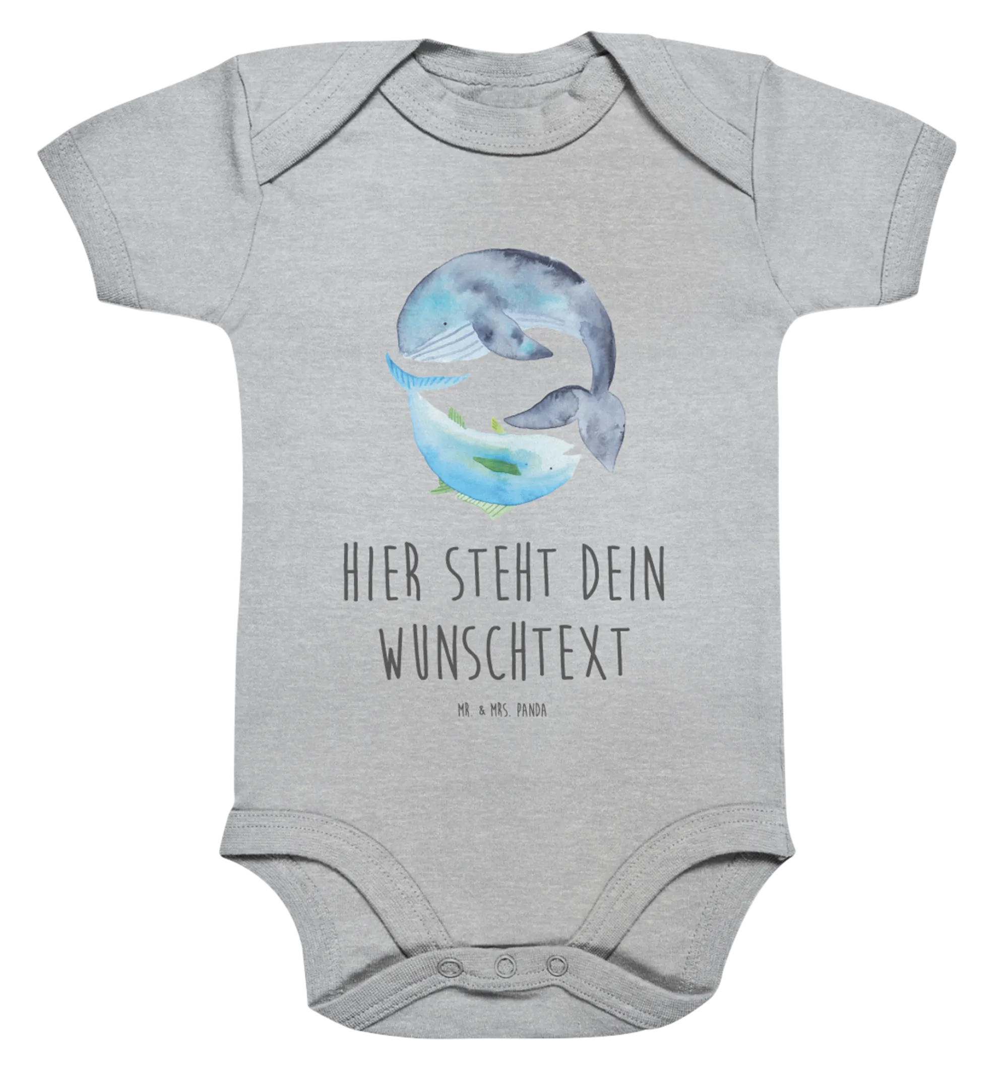 Entdecke den zauberhaften, personalisierten Baby Body mit dem lustigen Motiv Walfisch & Thunfisch aus der Small World Kollektion von Mr. & Mrs. Panda!