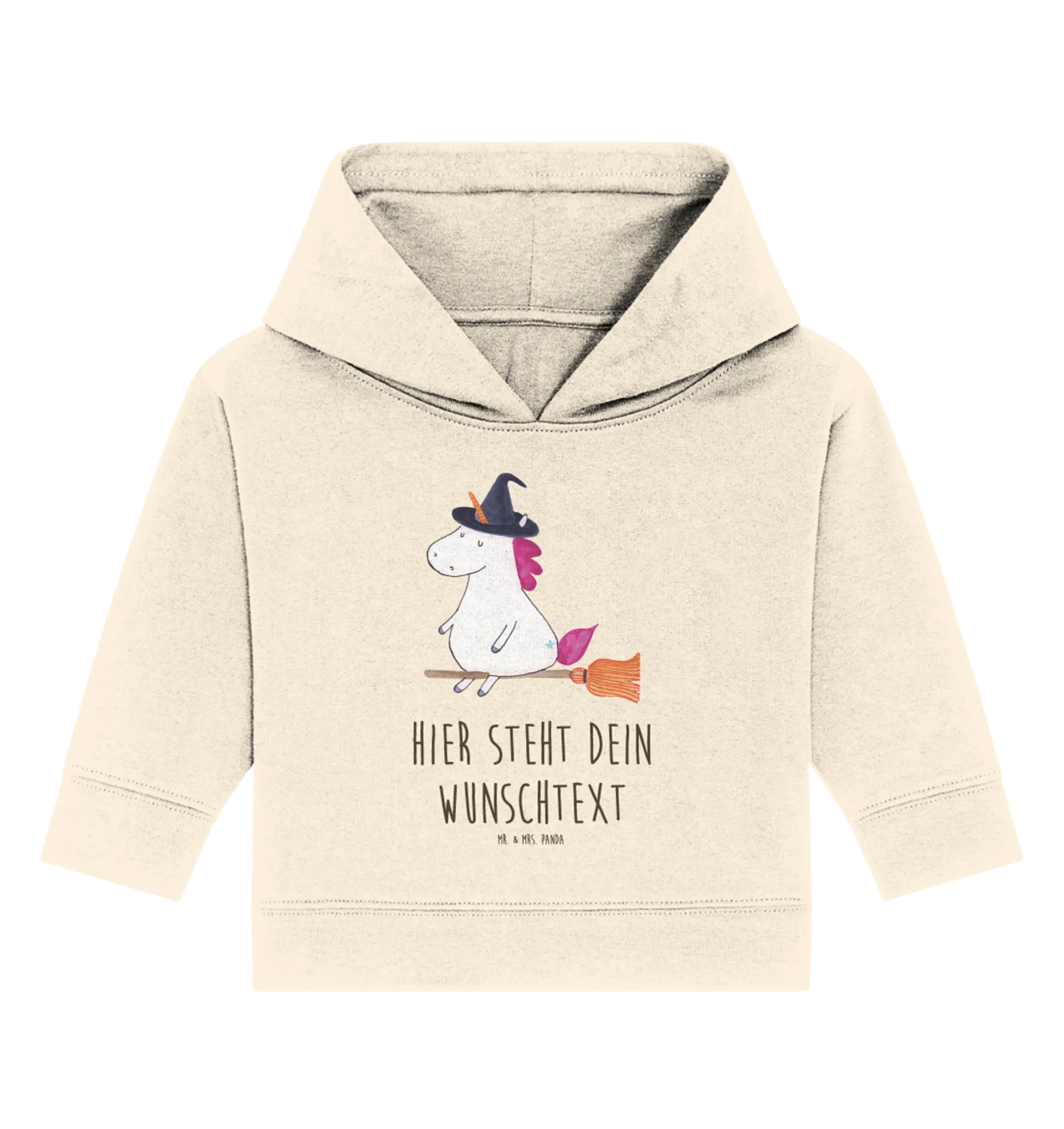 Auf der Suche nach einem zauberhaften Geschenk für die kleinen Engel in Deinem Leben? Der personalisierte Baby Hoodie "Einhorn Hexe" aus der exklusiven Einhorn-Kollektion von Mr. & Mrs. Panda ist die perfekte Wahl! Dieses süße Design kombiniert die Magie eines Einhorns mit dem verspielten Charme einer Hexe. Der Hoodie zeigt ein niedliches Einhorn, das fröhlich auf einem Besen reitet und einen Hexenhut trägt. Mit diesem Hoodie wird jedes Baby zum Blickfang!