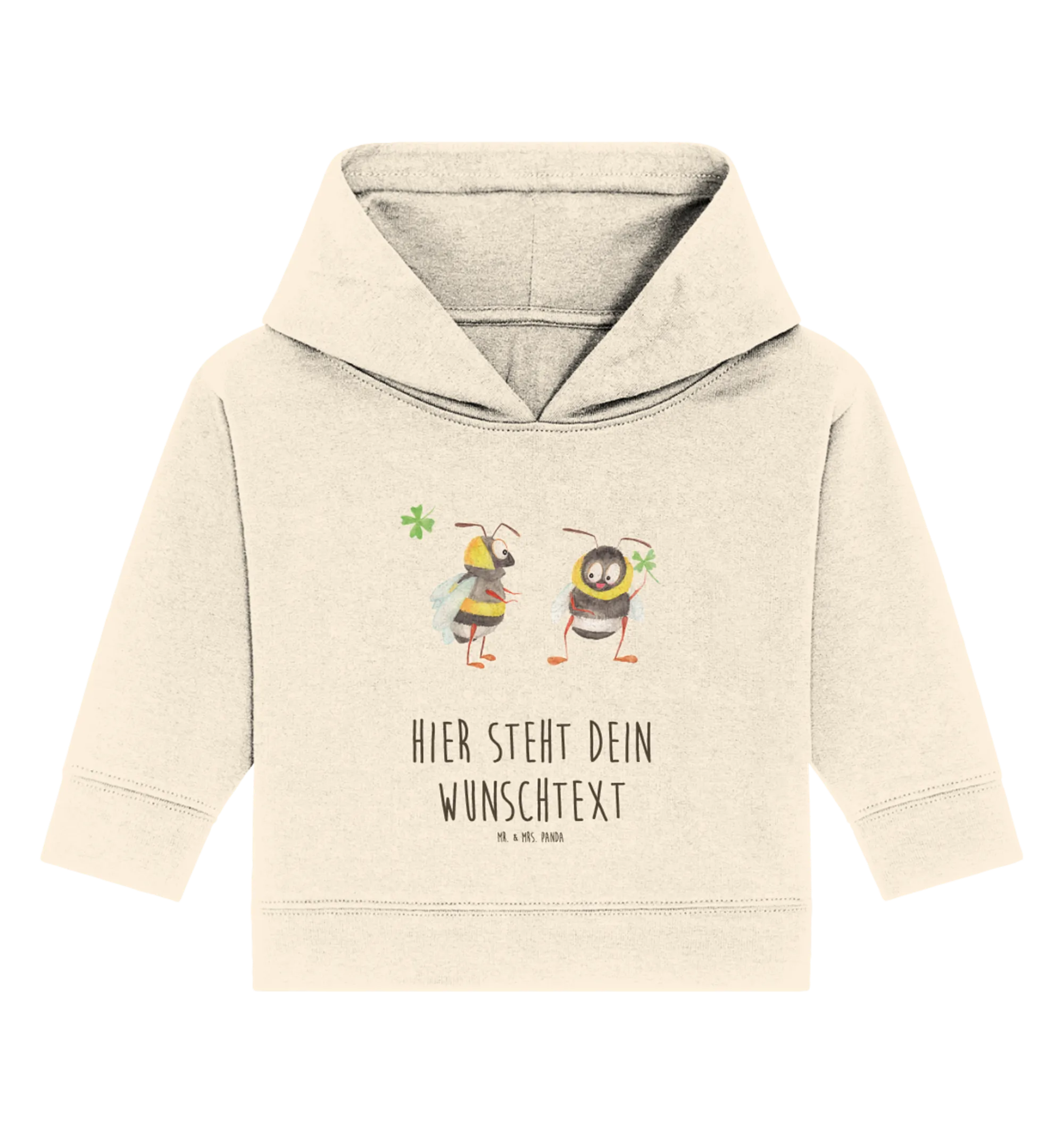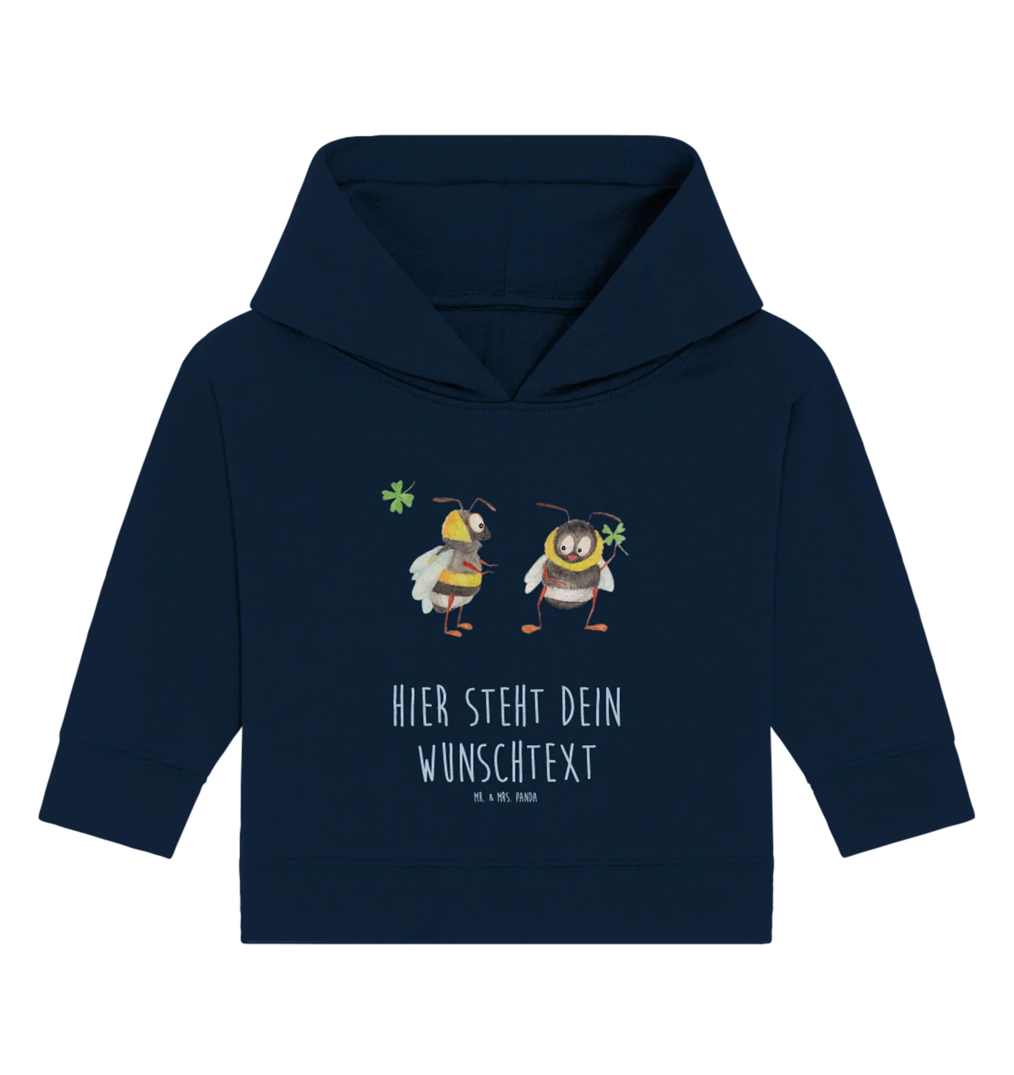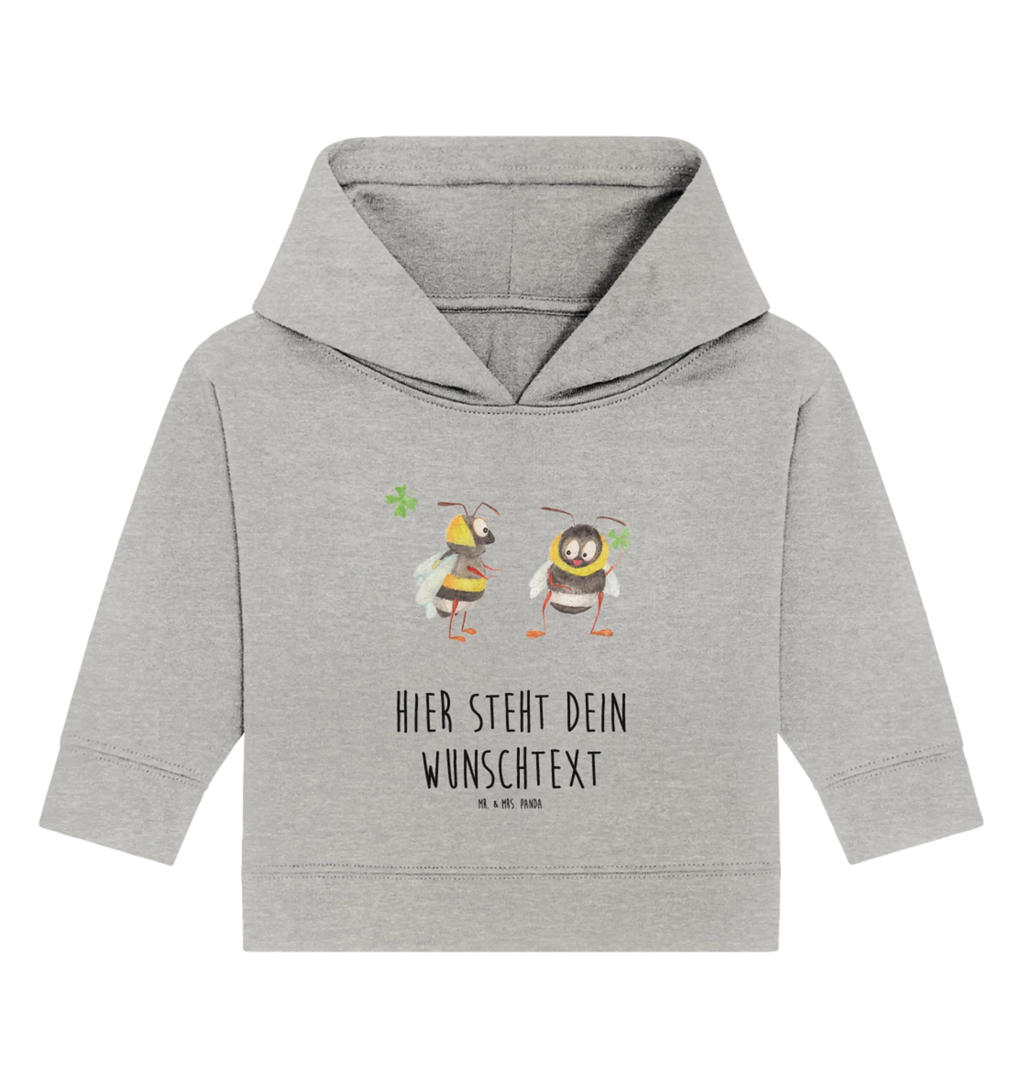 Der personalisierte Baby Hoodie ‚Hummeln mit Kleeblatt‘ aus der bezaubernden Small World Kollektion von Mr. & Mrs. Panda ist das perfekte Geschenk für die kleinen Lieblinge in Deinem Leben.