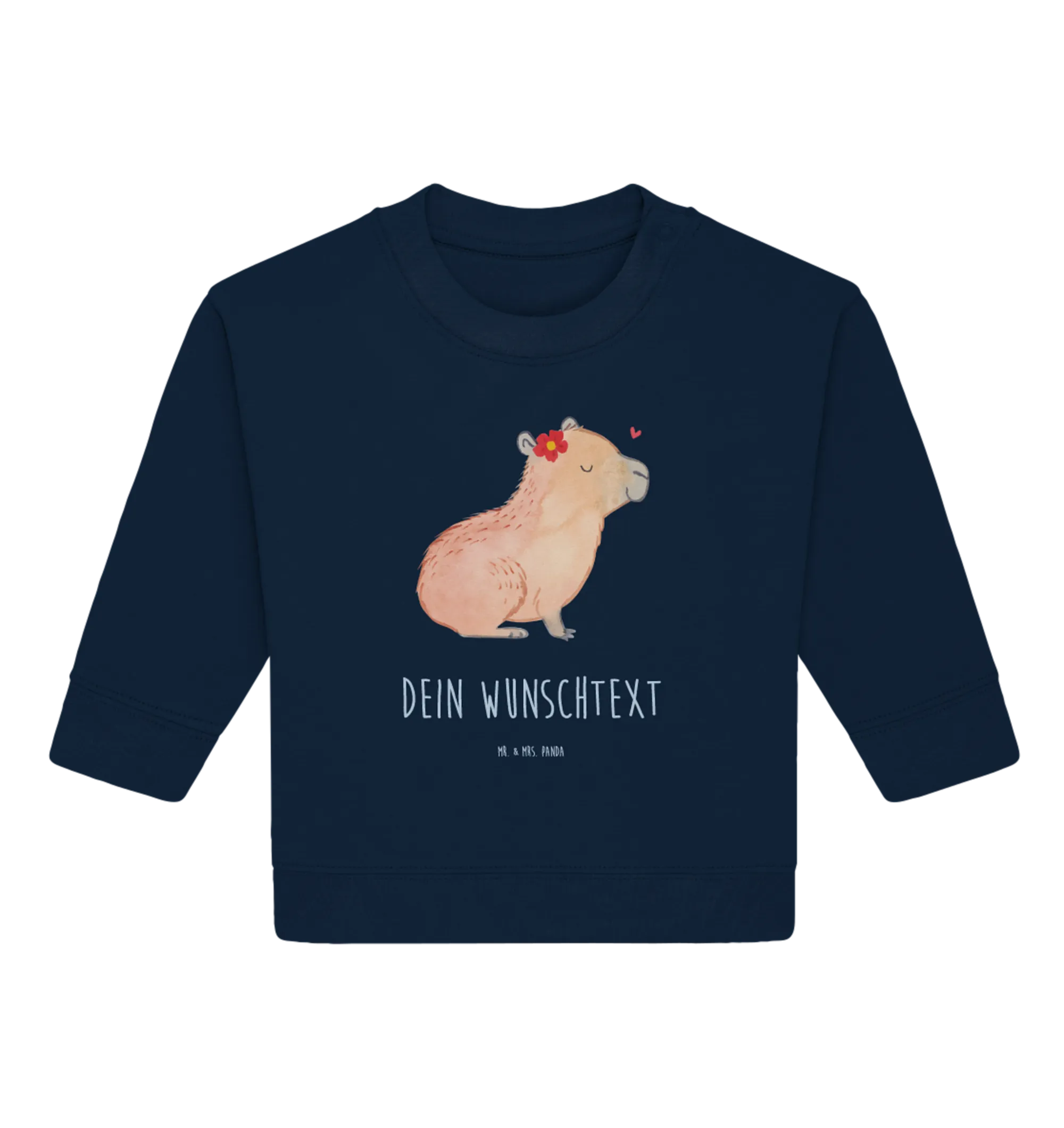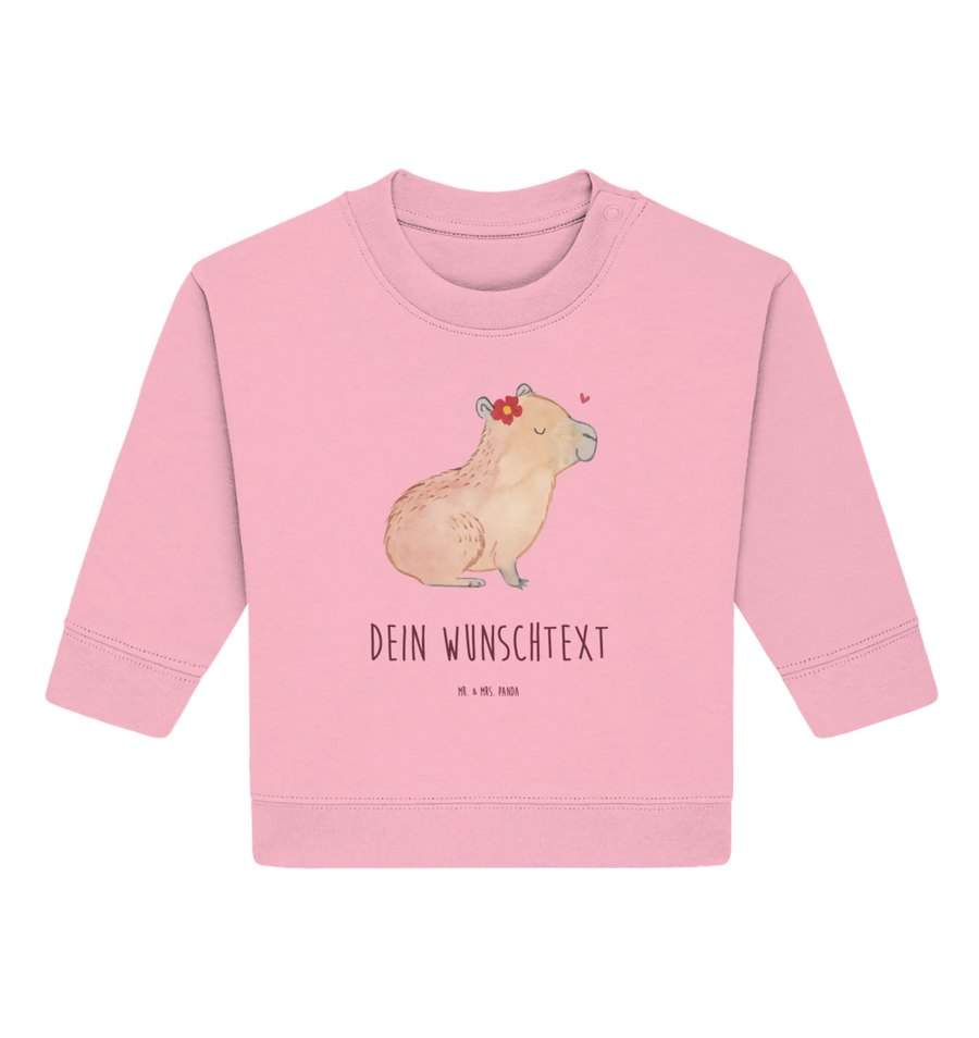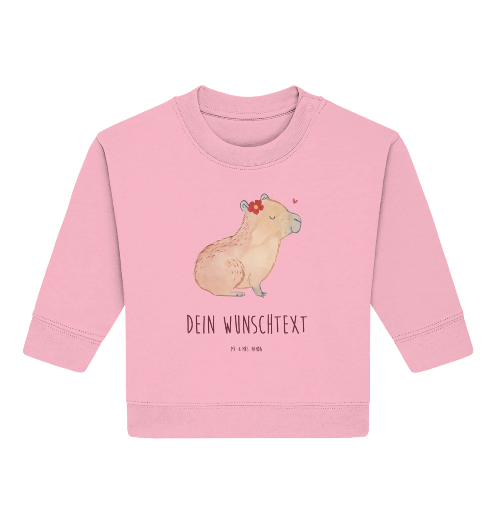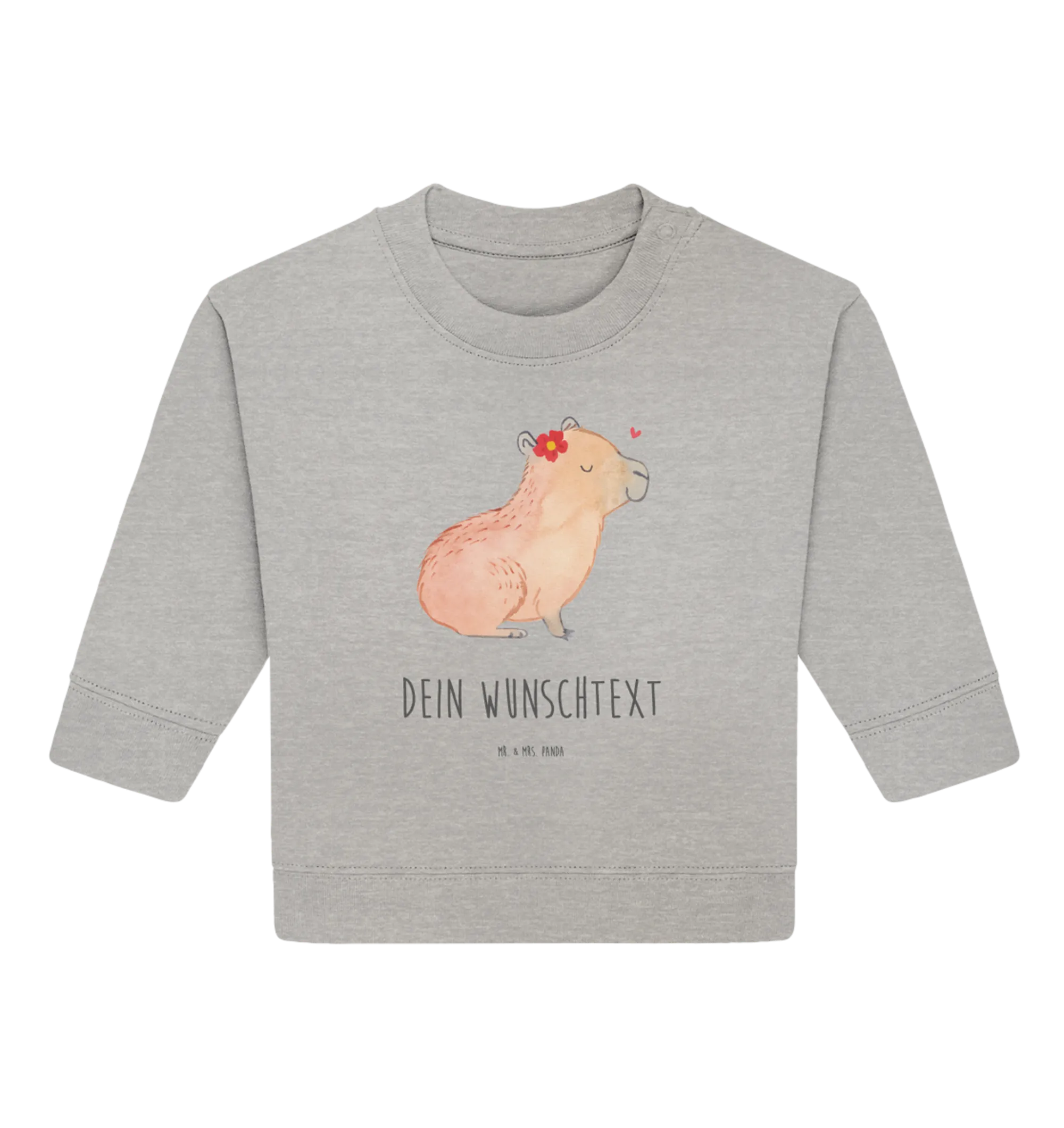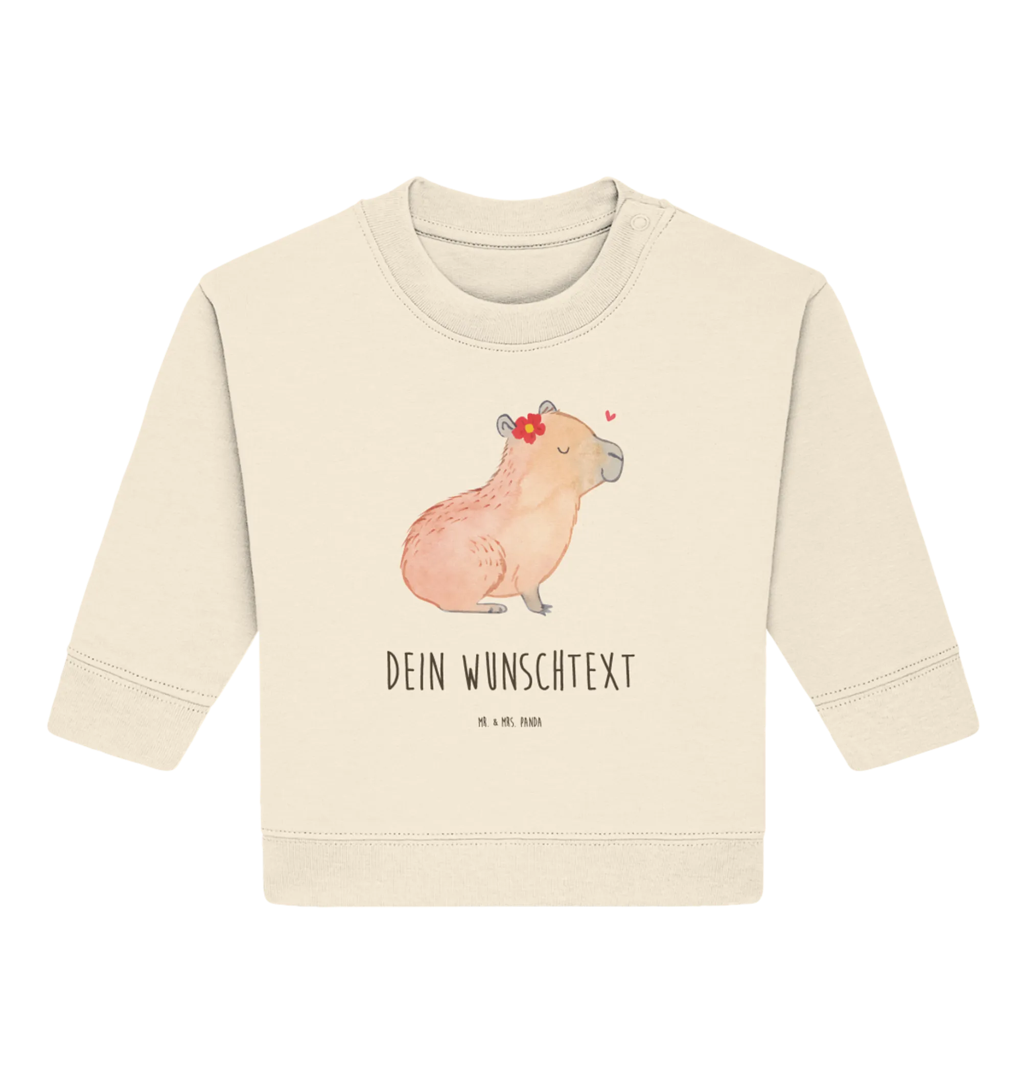 Entdecke den perfekten Begleiter für die kleinsten Entdecker mit unserem personalisierten Baby Pullover 'Capybara Blume' aus der entzückenden Small World Kollektion von Mr. & Mrs. Panda!