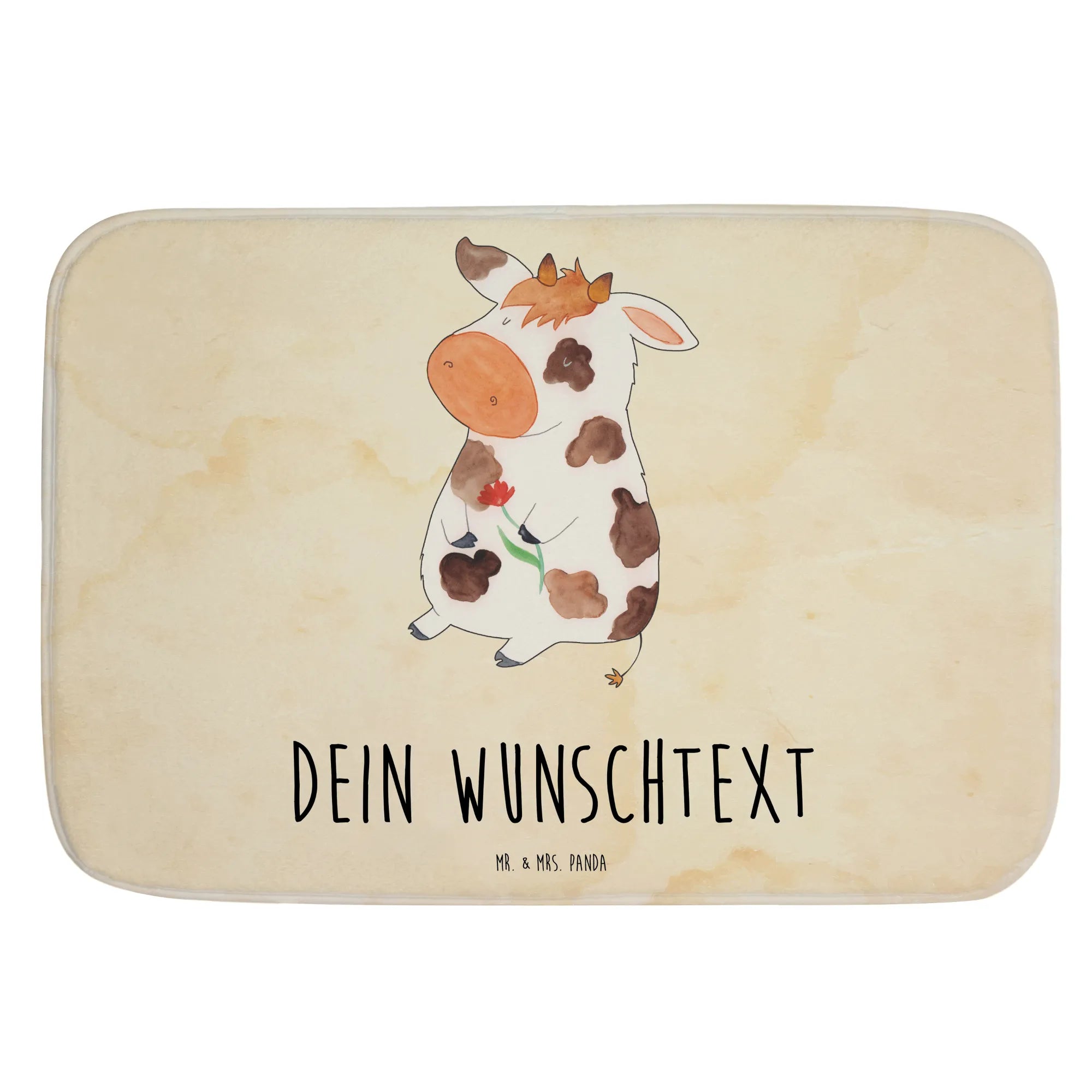 Entdecke unseren zauberhaften personalisierten Badvorleger mit dem süßen Kuh-Motiv aus der Bauernhof-Kollektion von Mr. & Mrs. Panda. Dieser Badvorleger ist nicht nur ein absolutes Highlight in deinem Badezimmer, sondern auch das perfekte Geschenk für Freunde und Familie! Die kleine verträumte Kuh, stolz mit einer Blume in der Hand, bringt frischen Wind und ein Lächeln in jeden Raum. Ob zur Hochzeit, zur Einweihung oder einfach als liebevolles Mitbringsel – dieser Badteppich ist für viele Anlässe ideal geeignet.