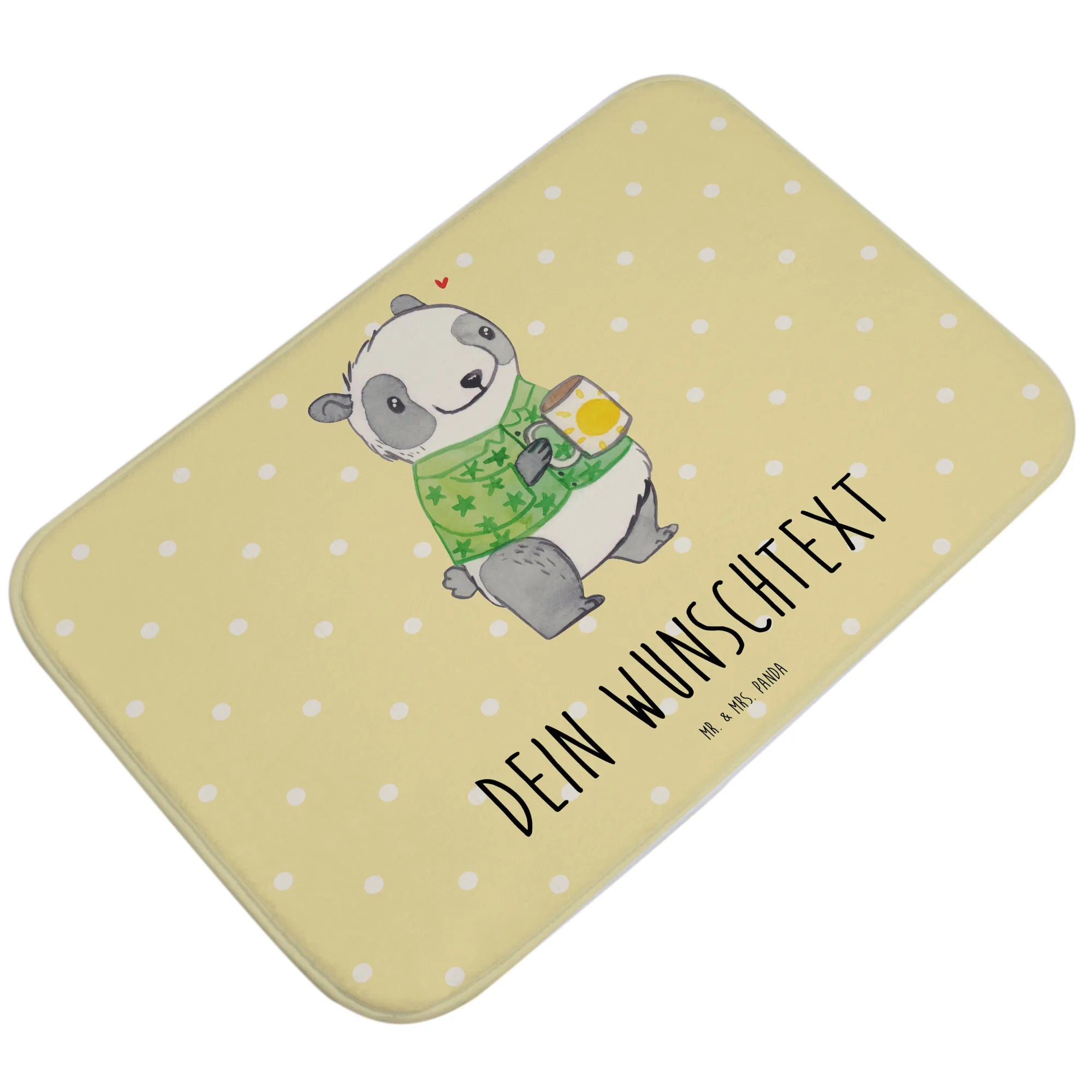 Entdecke den charmanten personalisierten Badvorleger von Mr. & Mrs. Panda, der mit seinen Maßen von 590 mm x 400 mm perfekt in jedes Badezimmer passt! Dieser Badteppich wird individuell nach deinen Wünschen mit Namen oder persönlichem Text bedruckt und sorgt damit für ein ganz individuelles Ambiente. Die weiche Premium Kunstfaser mit rutschfester Gummibeschichtung garantiert Sicherheit und Komfort. Mit einem besonders saugstarken Material ausgestattet, hält er auch nach dem Waschen bei 30°C seine Form und Farbe. Bring mit unserem Badvorleger frischen Wind in dein Badezimmer und mache es zu einem Ort, an dem du dich wohlfühlst!