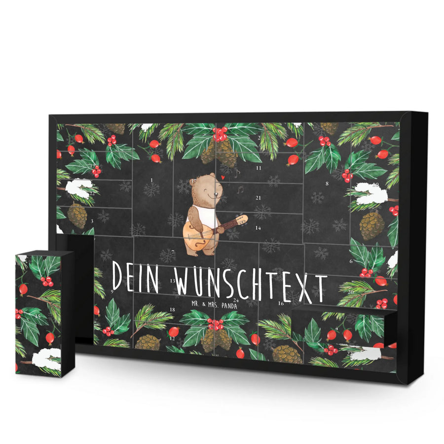 Der personalisierte befüllbare Adventskalender "Bär Mandoline" von Mr. & Mrs. Panda ist das perfekte Geschenk für Musikliebhaber und Musiker. Jeder Adventskalender kommt mit einer liebevollen Zeichnung, die einen glücklichen Bären zeigt, der mit geschlossenen Augen eine Mandoline spielt.