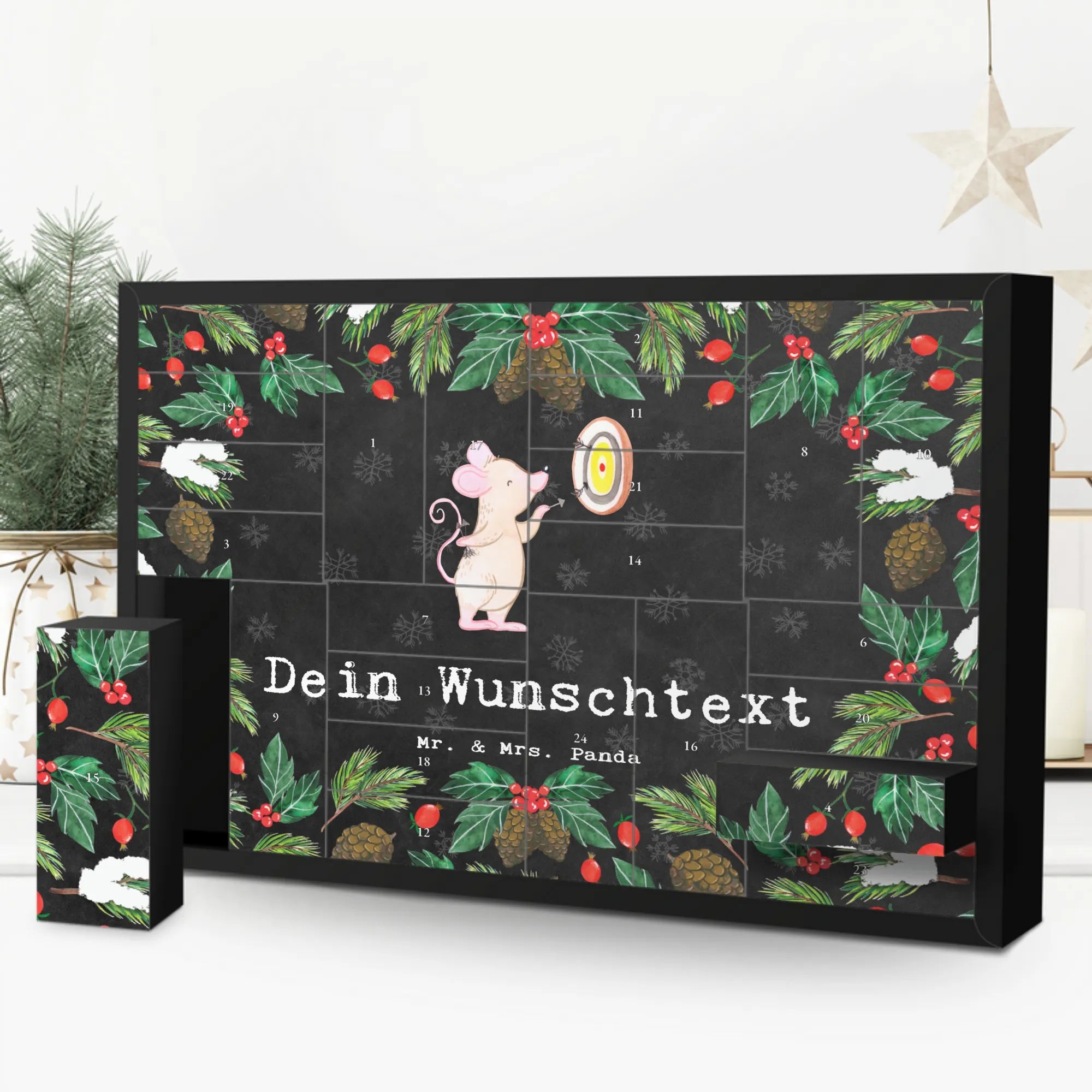 Personalisierter Befüllbarer Adventskalender Maus Dart spielen - Kreidetafel