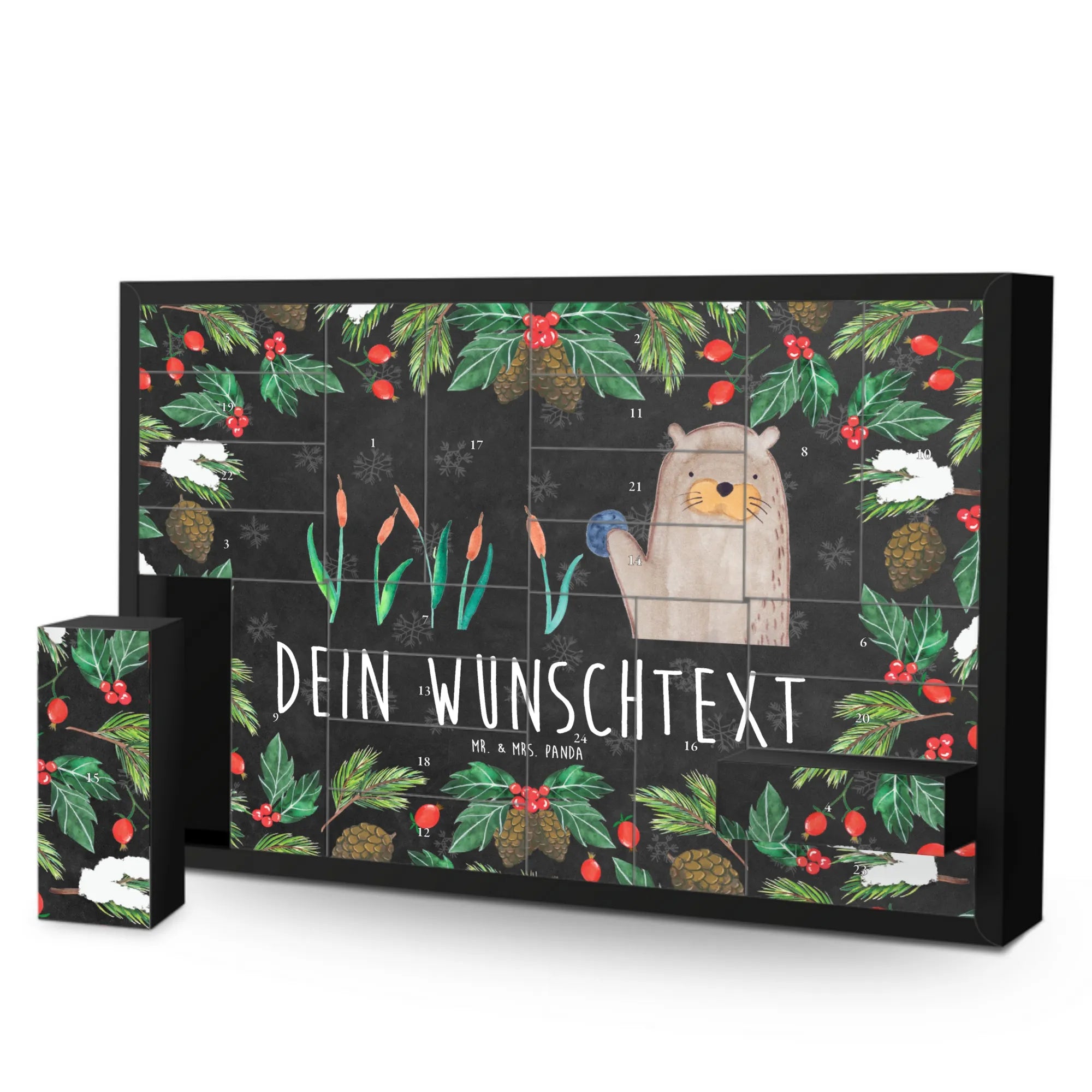 Lass die Otter-Kollektion von Mr. & Mrs. Panda dein Zuhause mit Liebe und Freude erfüllen. Der Kalender wird ohne Füllung geliefert, sodass du ganz nach deinem Geschmack gestalten kannst, was drin ist. Mache jetzt jemandem eine ganz besondere Freude zur Adventszeit mit diesem einzigartigen Gift, das Herzen höher schlagen lässt!