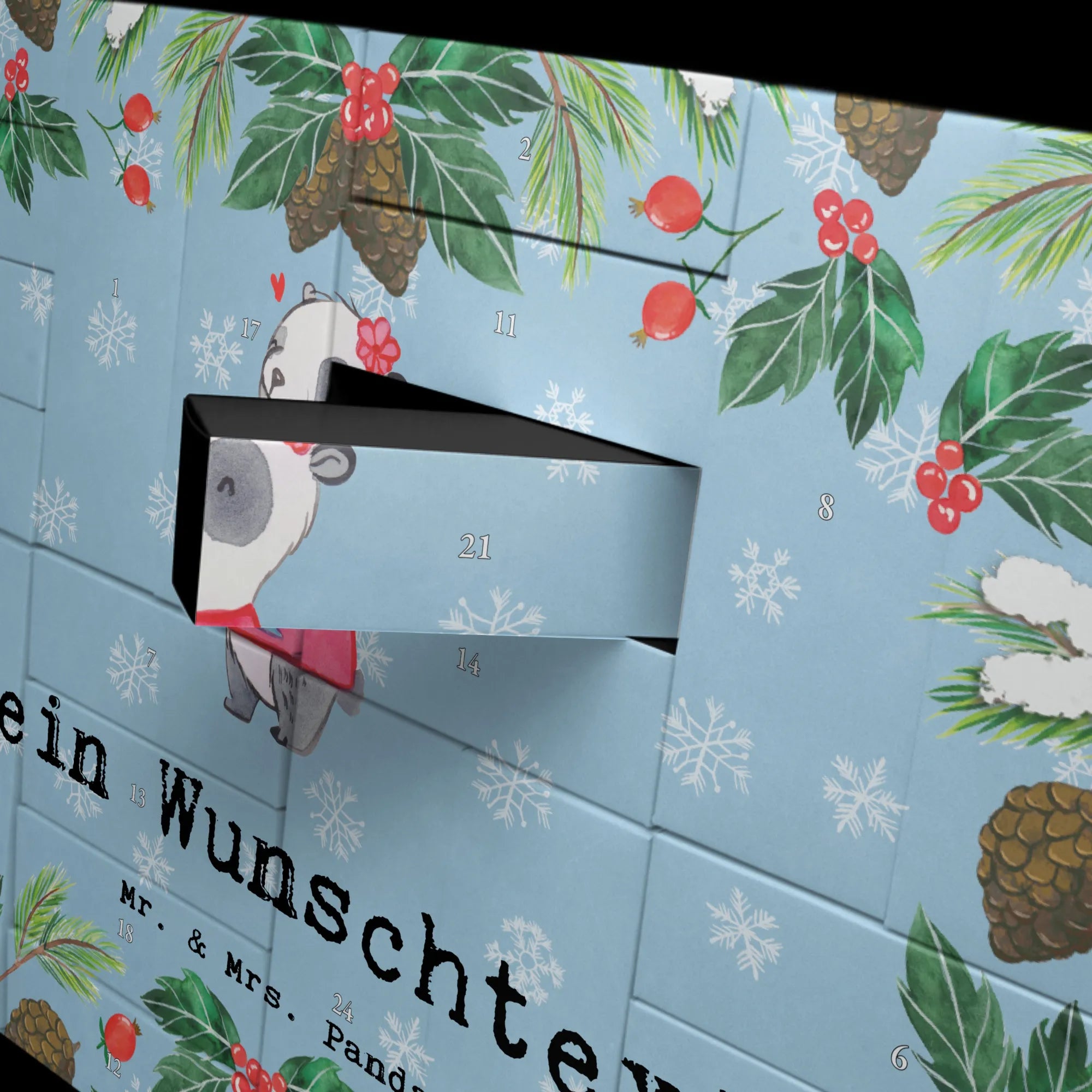 🐼 PERSONALISIERTER ADVENTSKALENDER: 24 Fächer, Mr. & Mrs. Panda Druck, inklusive Aufsteller.