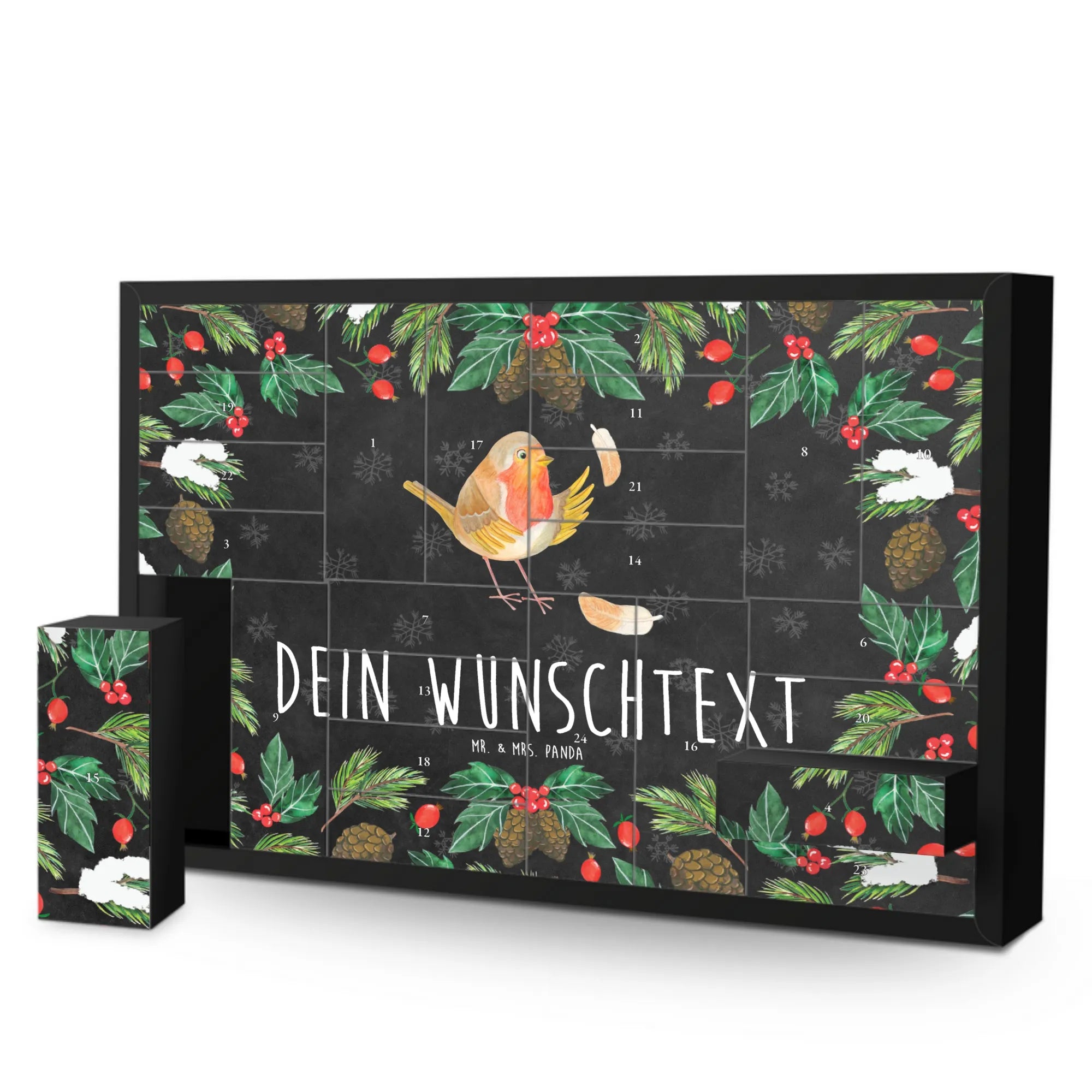 Personalisierter Befüllbarer Adventskalender Rotkehlchen Federn - Kreidetafel
