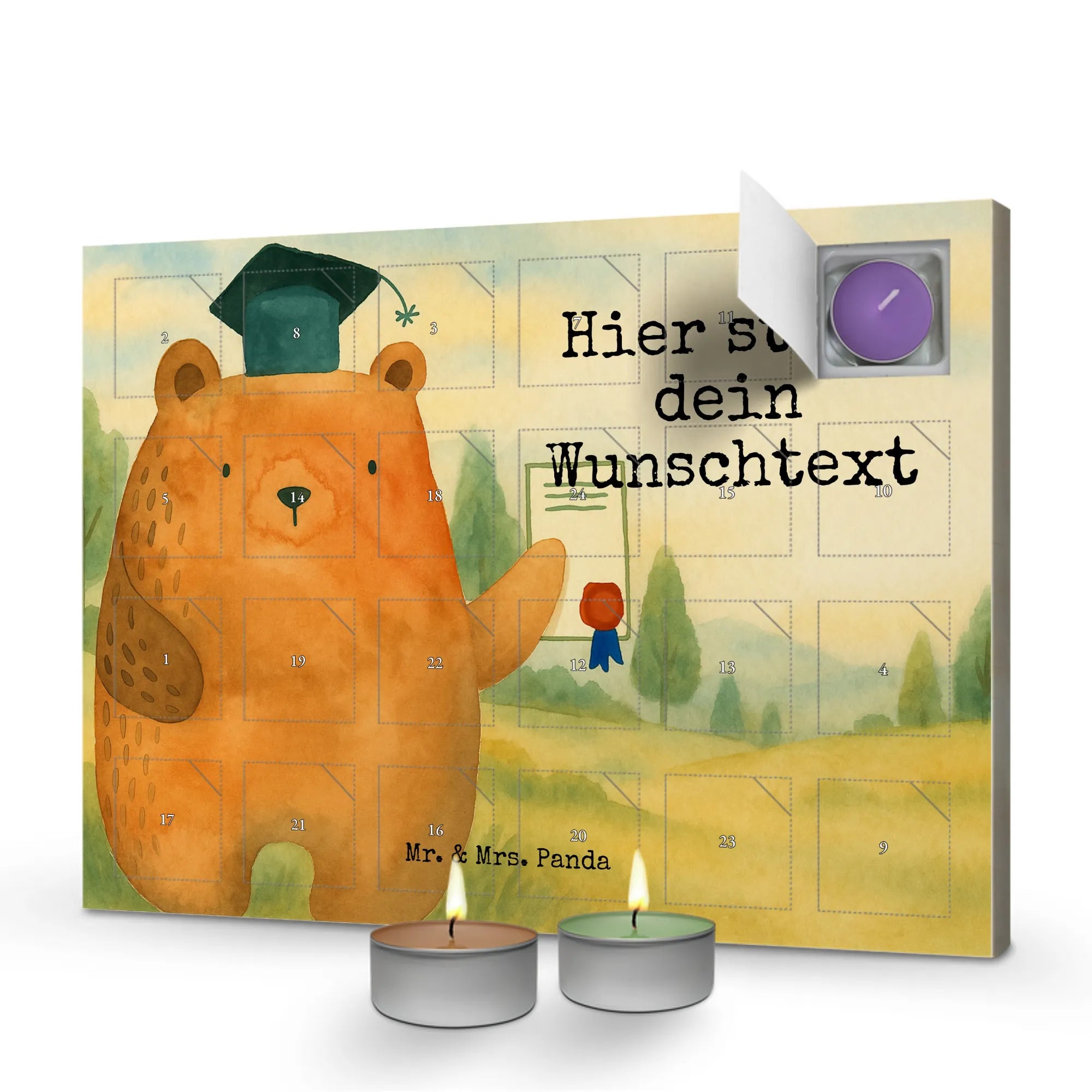 Personalisierter Duftkerzen Adventskalender Bär Prüfung Design