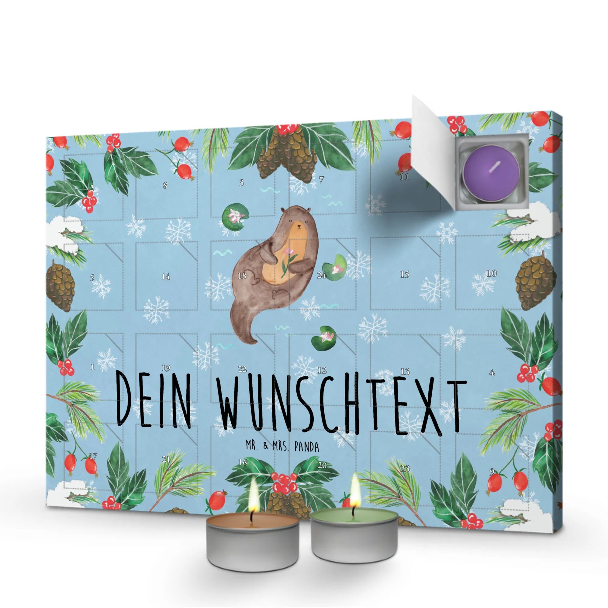 Der personalisierte Duftkerzen Adventskalender 'Otter mit Seerose' aus der Otter-Kollektion von Mr. & Mrs. Panda ist das perfekte Geschenk für alle, die eine Vorliebe für die niedlichen Otter haben. Dieser wunderschöne Adventskalender ist mit liebevoll gestalteten Motiven und herzlichen Sprüchen ausgestattet, die jeden Tag im Advent zu einem besonderen Erlebnis machen. Ob für Freunde, Familie oder als persönliche Freude – dieser Kalender sorgt für Freude im ganzen Dezember.
