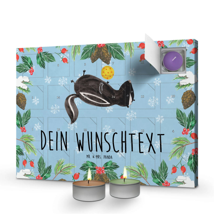 Personalisierter Duftkerzen Adventskalender Stinktier Ball - Eisblau