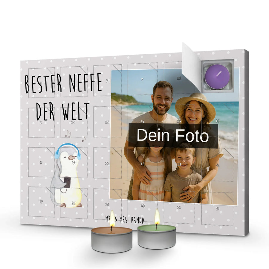 Personalisierter Duftkerzen Foto Adventskalender Pinguin Bester Neffe der Welt