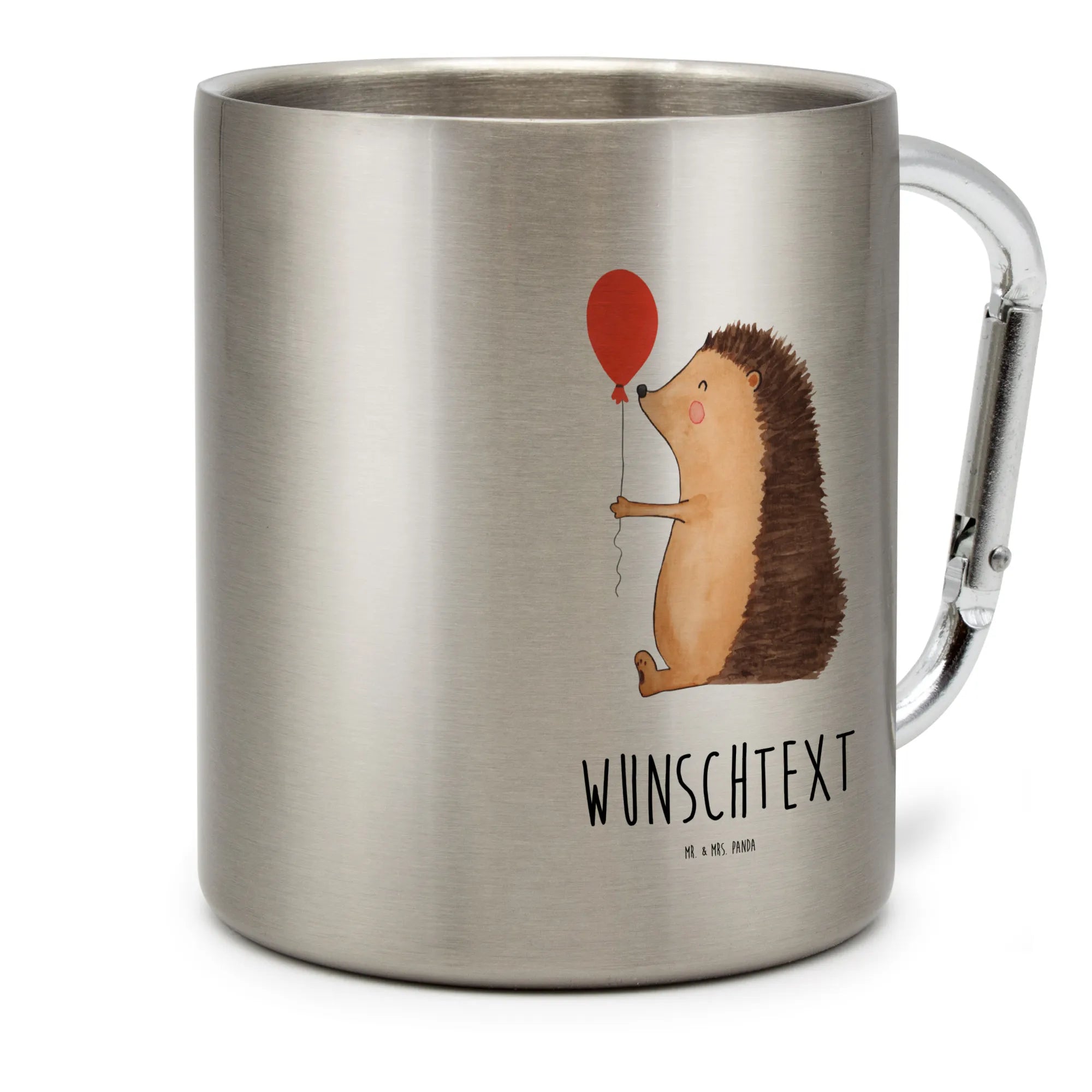 Personalisierter Edelstahlbecher Igel mit Luftballon