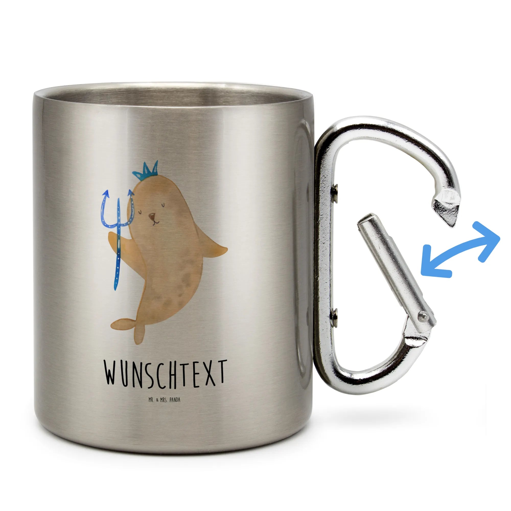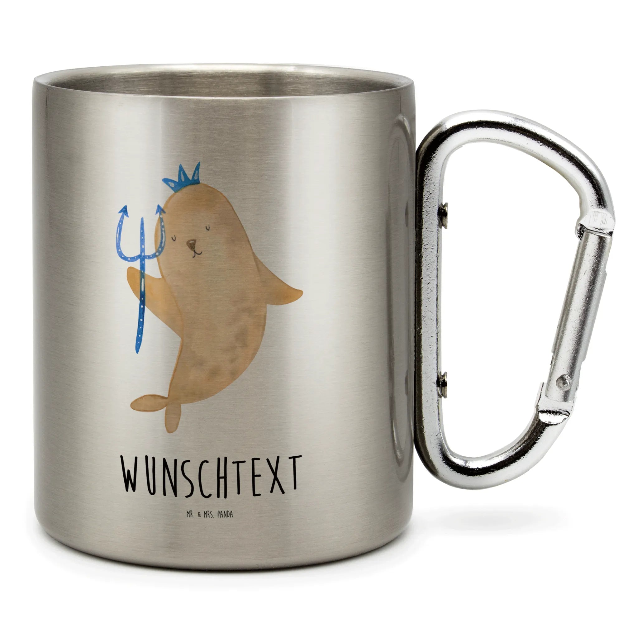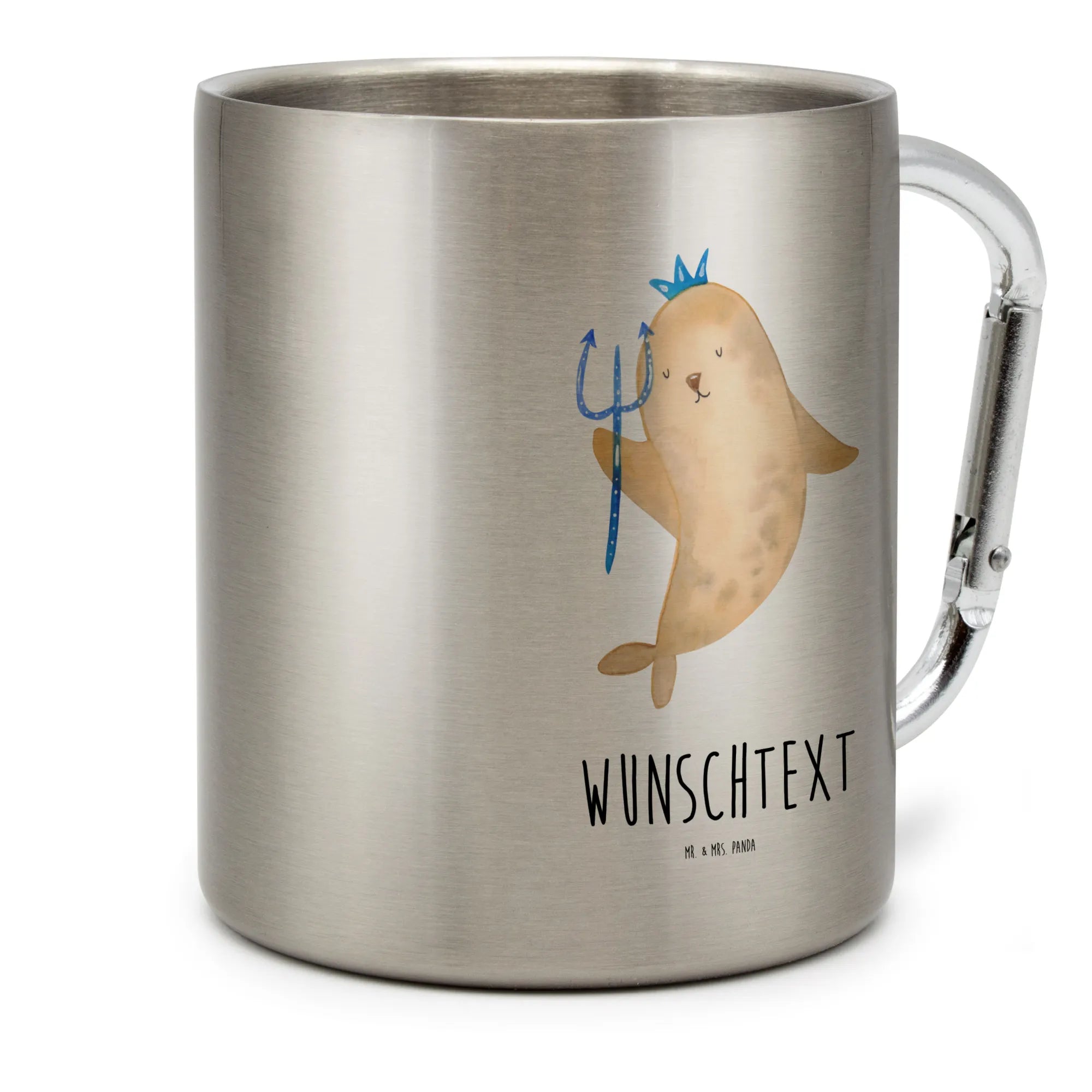 Das besondere Design zeigt die niedliche Wassermann-Gestalt – eine Robbe mit einer Krone auf dem Kopf und einem Zepter in der Hand – die nichts lieber tut, als ihre Freunde zu beschützen. Diese süße Illustration wurde liebevoll per Hand gezeichnet und bringt das charmante Wesen des Wassermanns perfekt zur Geltung. Mit einem integrierten Karabinerhaken kannst du den Becher auch sicher an deinem Rucksack befestigen, damit er dir auf deinen Abenteuern nicht verloren geht.