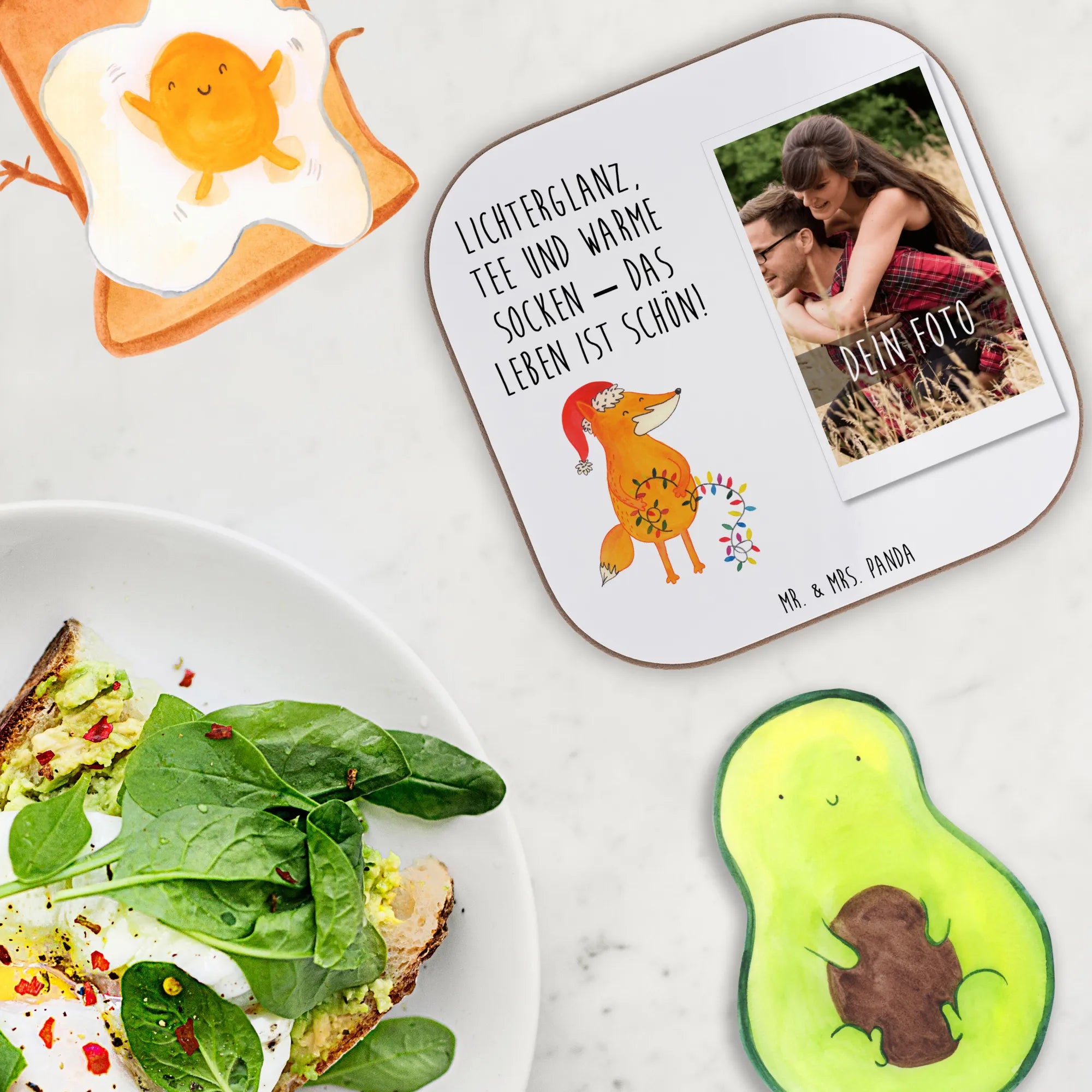 Entdecke den perfekten persönlichen Foto Untersetzer mit dem bezaubernden Motiv "Fuchs Weihnachten" aus der Winter Kollektion von Mr. & Mrs. Panda!