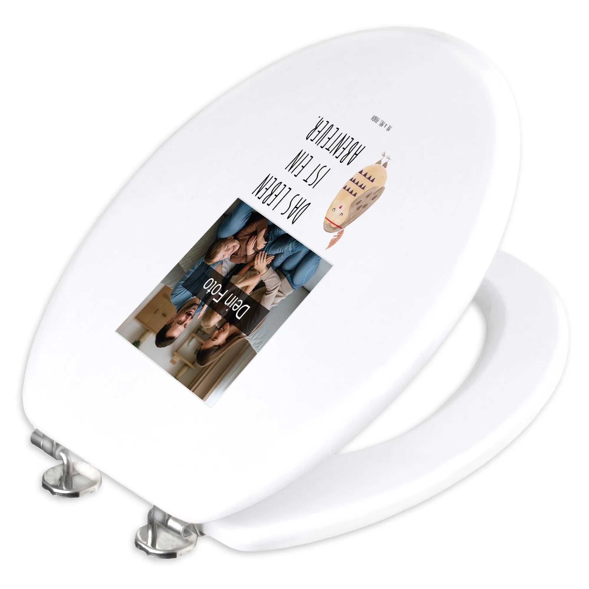 Mache dein Badezimmer zu einem Ort voller Freude mit unserem personalisierten Foto WC Sitz Motiv von Mr. & Mrs. Panda! Dieses einzigartige Möbelstück misst 430 mm x 370 mm x 50 mm und ist entweder aus edlem Bambus Holz (braun) oder praktischem MDF Holz (weiß) erhältlich. Der Sitz wird mit bezaubernden Motiven und fröhlichen Sprüchen bedruckt, die dein Bad in einen fröhlichen Raum verwandeln. Aber das Beste daran? Du kannst ihn mit deinem persönlichen Wunschfoto gestalten! Denk daran, dass das hochgeladene Bild in guter Auflösung sein sollte, damit alles optimal zur Geltung kommt. Dieser WC Sitz passt auf jede Euro-WC-Becken und wird mit sämtlichem Befestigungsmaterial geliefert. Er ist nicht nur angenehm und wärmespeichernd, sondern lässt sich auch einfach reinigen – ein feuchtes Tuch und milde Seife genügen! Mit dem langlebigen UV-Druck bleibt dein persönliches Motiv auch viele Jahre strahlend schön. Hol dir diesen einmaligen Toilettensitz und bringe gute Laune ins Bad!