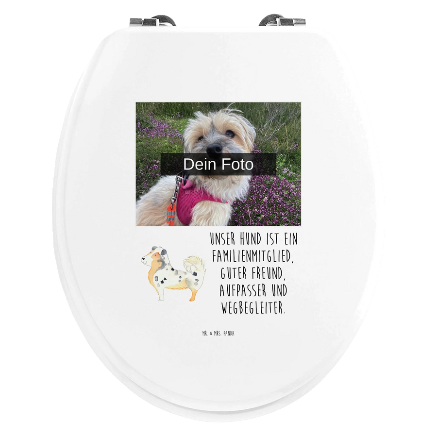 Personalisierter Foto WC Sitz Motiv Hund Australien Shepherd - Hartfaser Holzkern Weiß