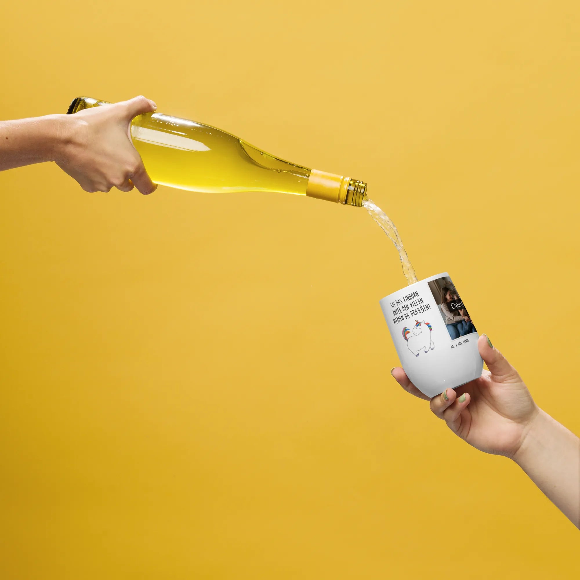 Personalisierter Foto Weinbecher Einhorn Stolzieren – Mr. & Mrs. Panda