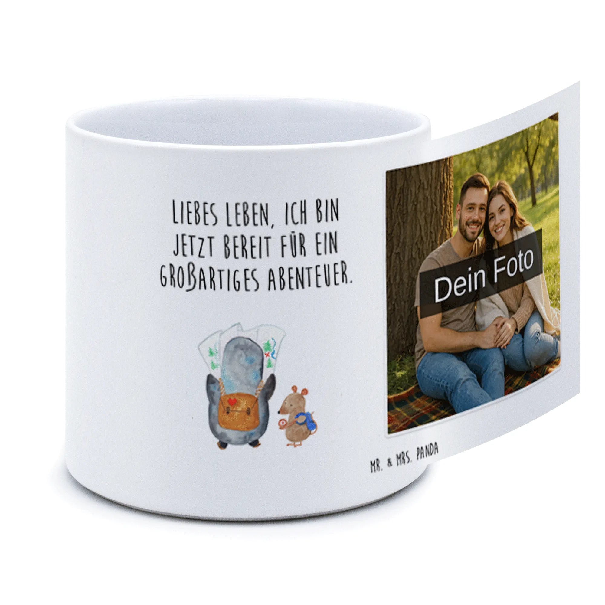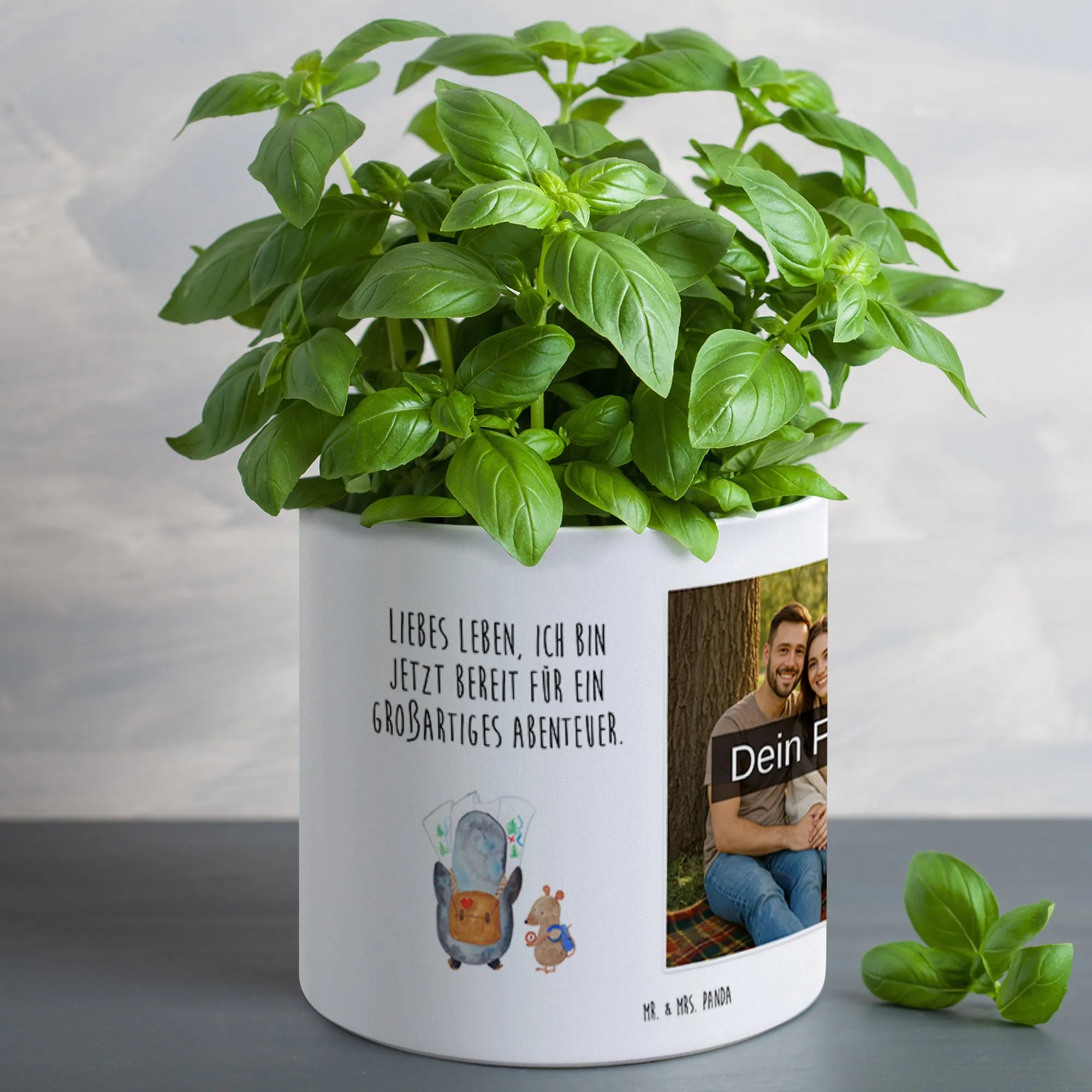 Personalisierter Foto XL Blumentopf Pinguin & Maus Wanderer