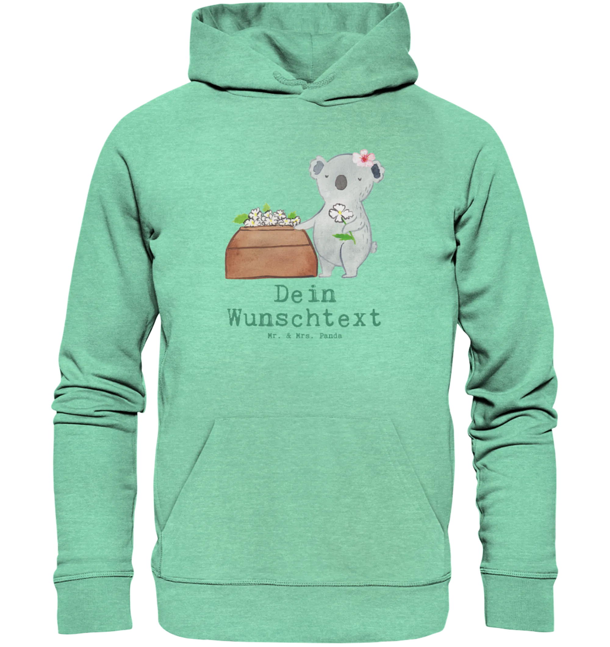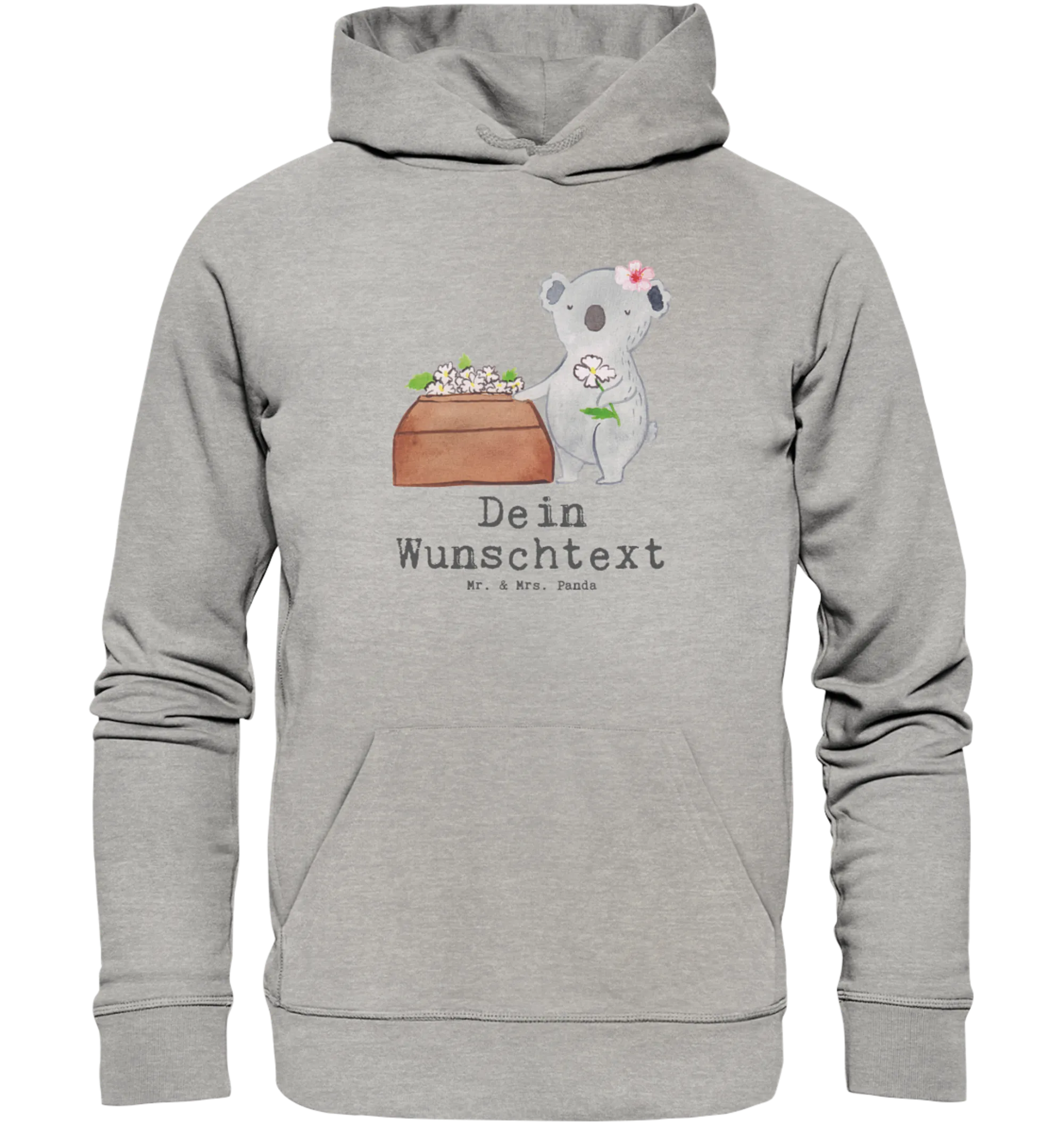 Aus flauschiger Bio-Baumwolle gefertigt, bietet der Kapuzenpullover nicht nur einen hohen Tragekomfort, sondern kann auch ganz nach deinem persönlichen Wunschtext oder Namen gestaltet werden. Das humorvolle und zugleich respektvolle Design zeigt einen niedlichen Koala, der ehrfürchtig vor einem Sack Blumen steht – perfekt für die Bestatterin, die ihre Arbeit mit Herz, Hingabe und Leidenschaft macht.