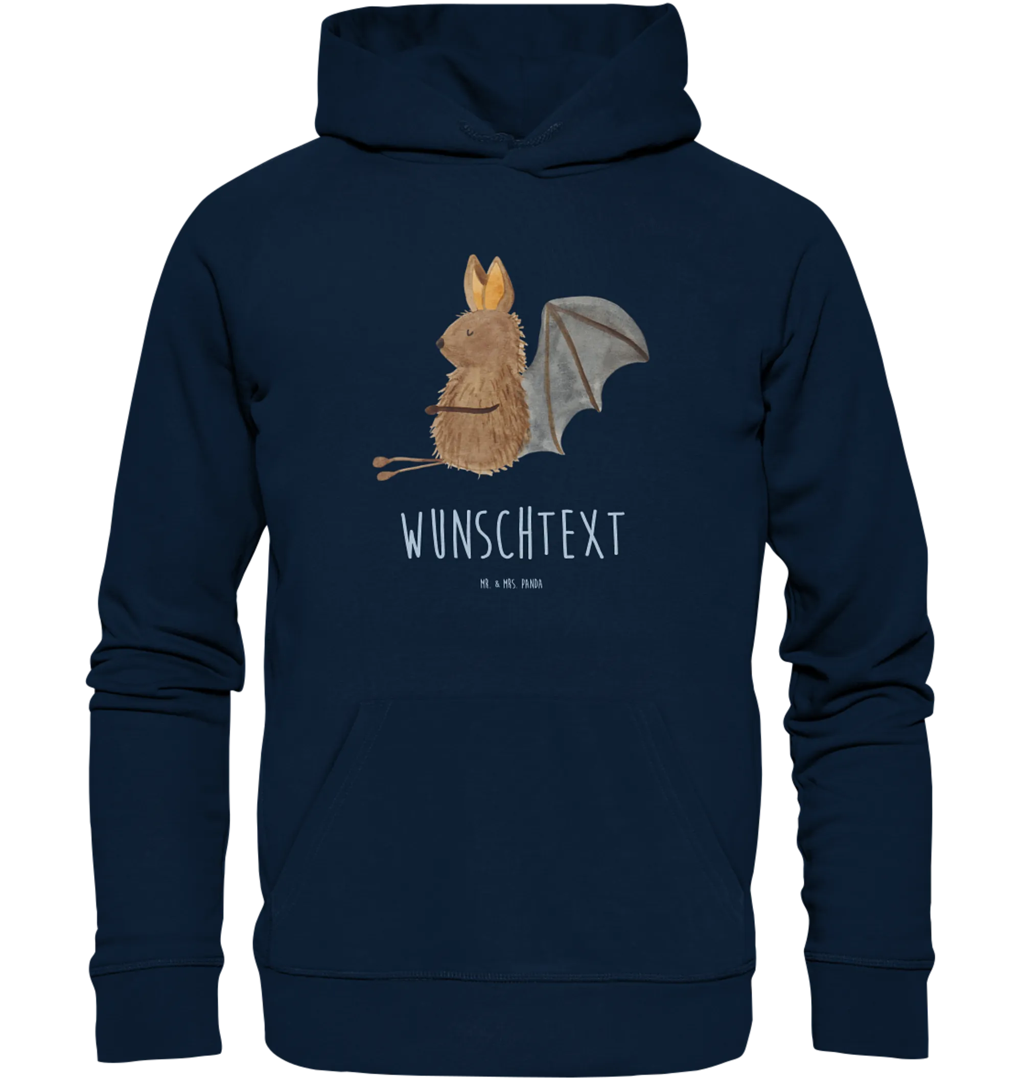 Der perfekte Begleiter für gemütliche Abende und entspannte Momente – der personalisierte Hoodie mit dem süßen Motiv der sitzenden Fledermaus aus der beliebten Small World Kollektion von Mr. & Mrs. Panda!