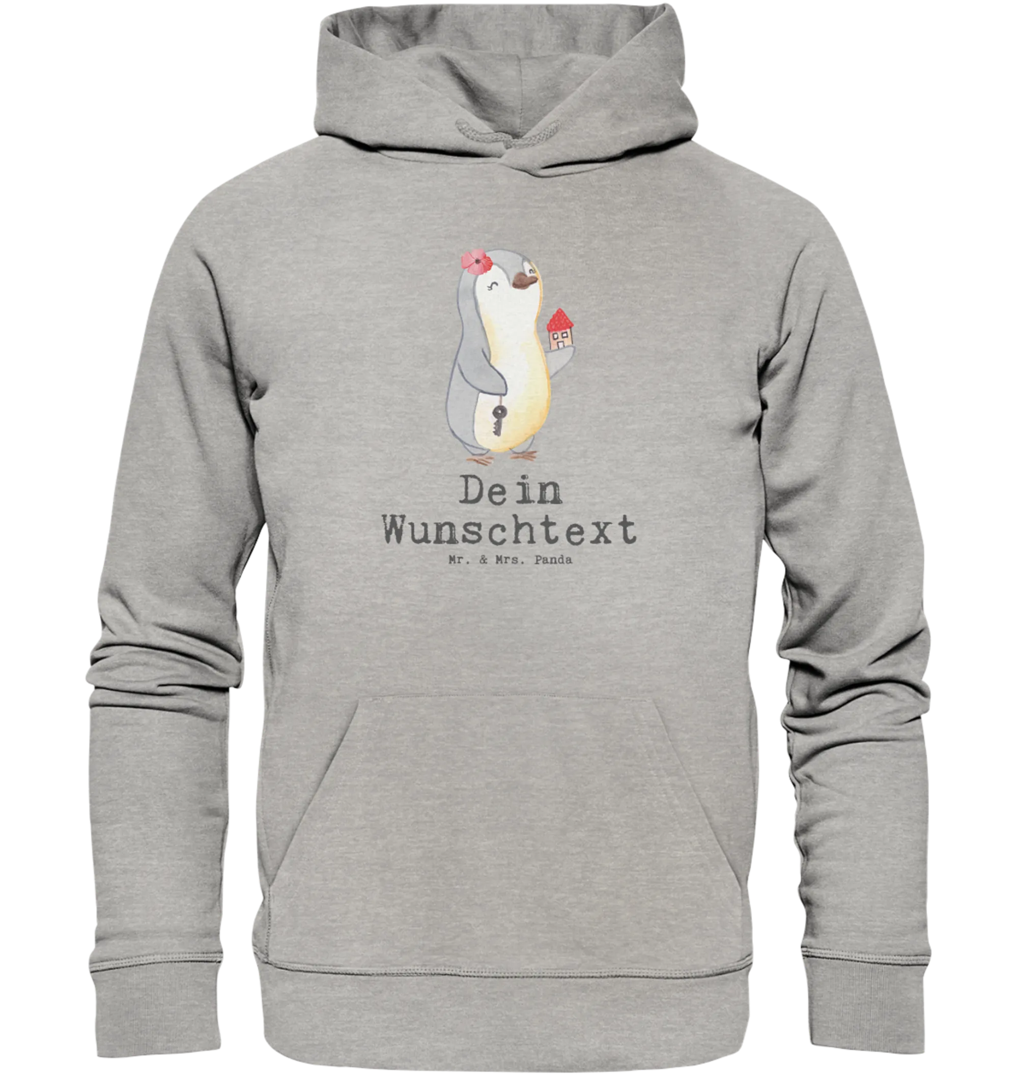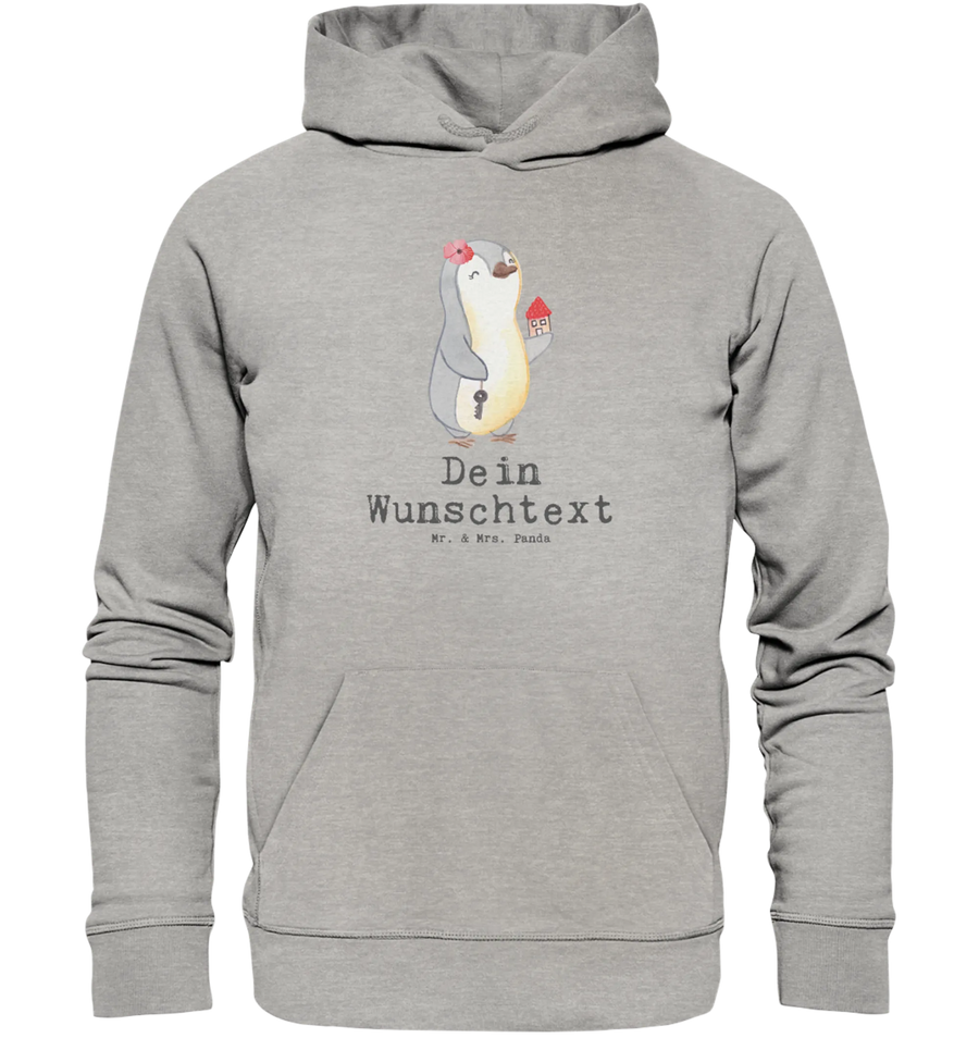 Das süße Design mit dem Pinguin, der einen Schlüssel und ein Haus hält, verleiht dem Hoodie zudem einen charmanten Touch. Entdecke die kreative Berufe-Kollektion von Mr. & Mrs. Panda und mache einem besonderen Menschen eine Freude! Ein personalisierter Hoodie ist das perfekte Geschenk für alle Immobilienkauffrauen, die ihre Leidenschaft für ihren Beruf stolz zur Schau stellen möchten.