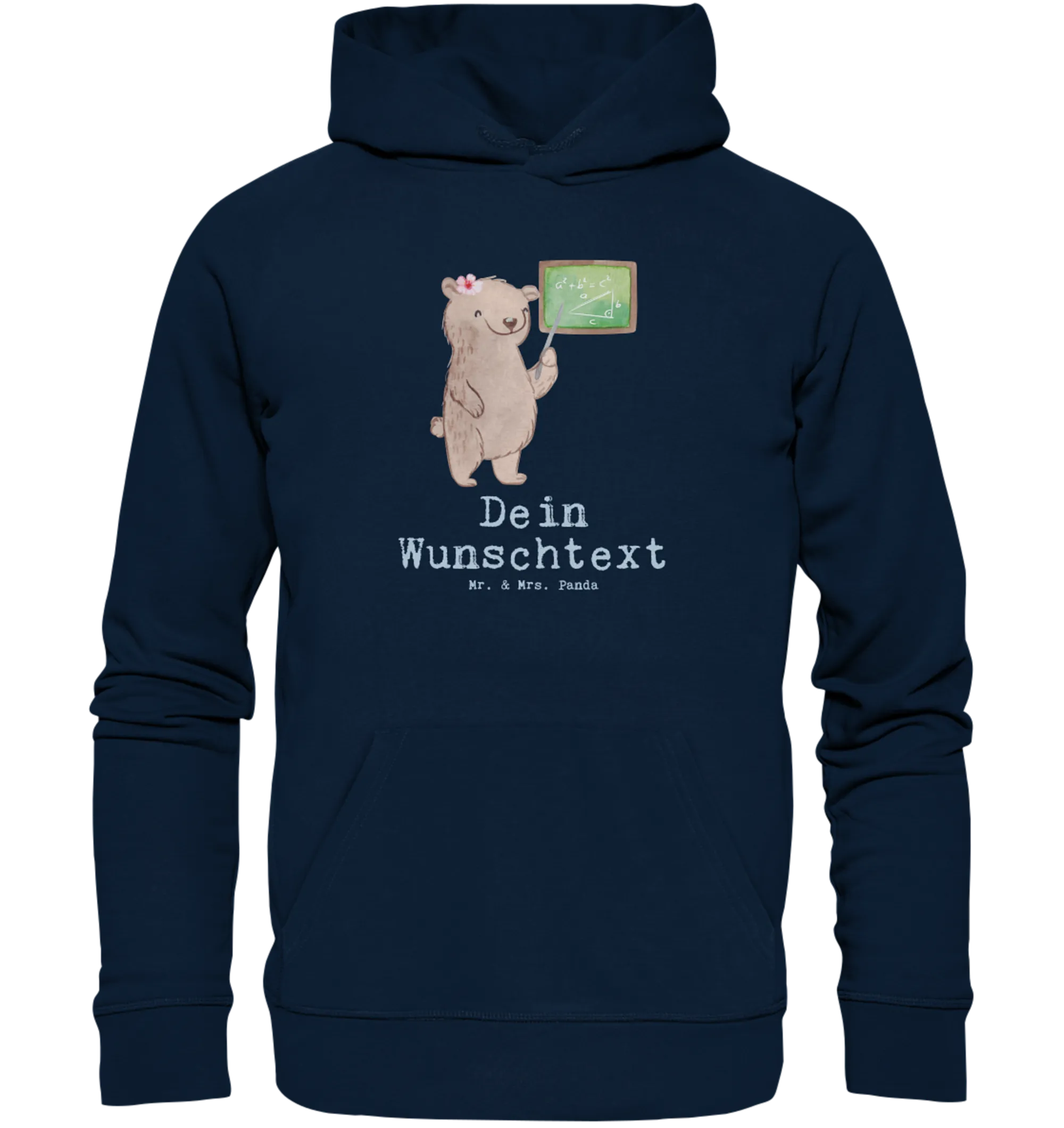 Unser Personalisierter Organic Hoodie aus der Berufe-Kollektion von Mr. & Mrs. Panda ist das ideale Geschenk für alle Mathematik Studentinnen, Mathelehrerinnen und Mathematikerinnen, die stolz auf ihre Leidenschaft sind. Das entzückende Motiv zeigt eine weibliche Bärenfigur vor einer Schultafel und wird begleitet vom Spruch „Du bist nur ein halber Mensch, wenn du keine Mathematikerin bist.“ – frech, herzlich und voller Charakter.