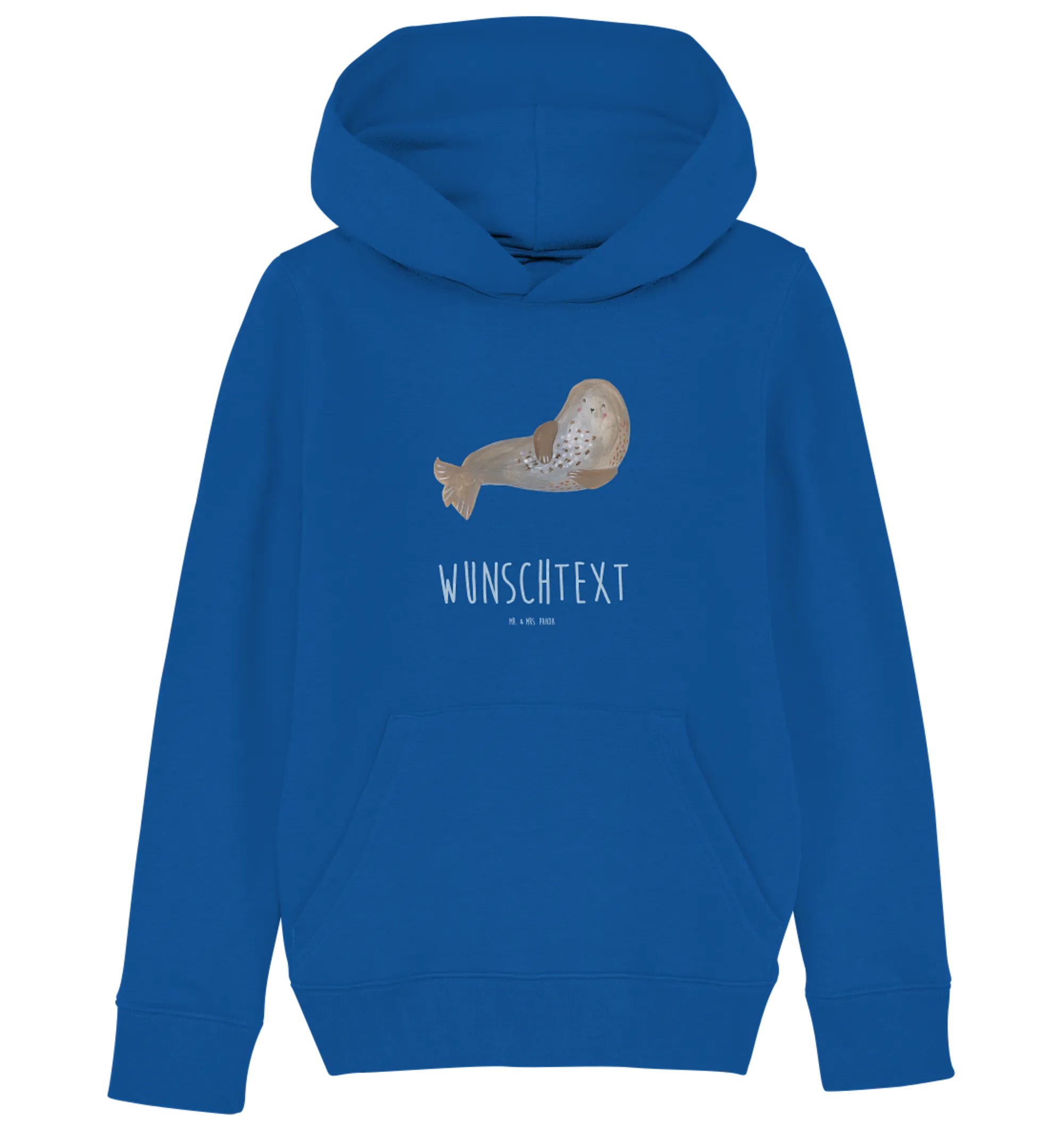 Mr. & Mrs. Panda präsentiert: Personalisierter Kinder Hoodie „Robbe lachend“ – Small World Kollektion.