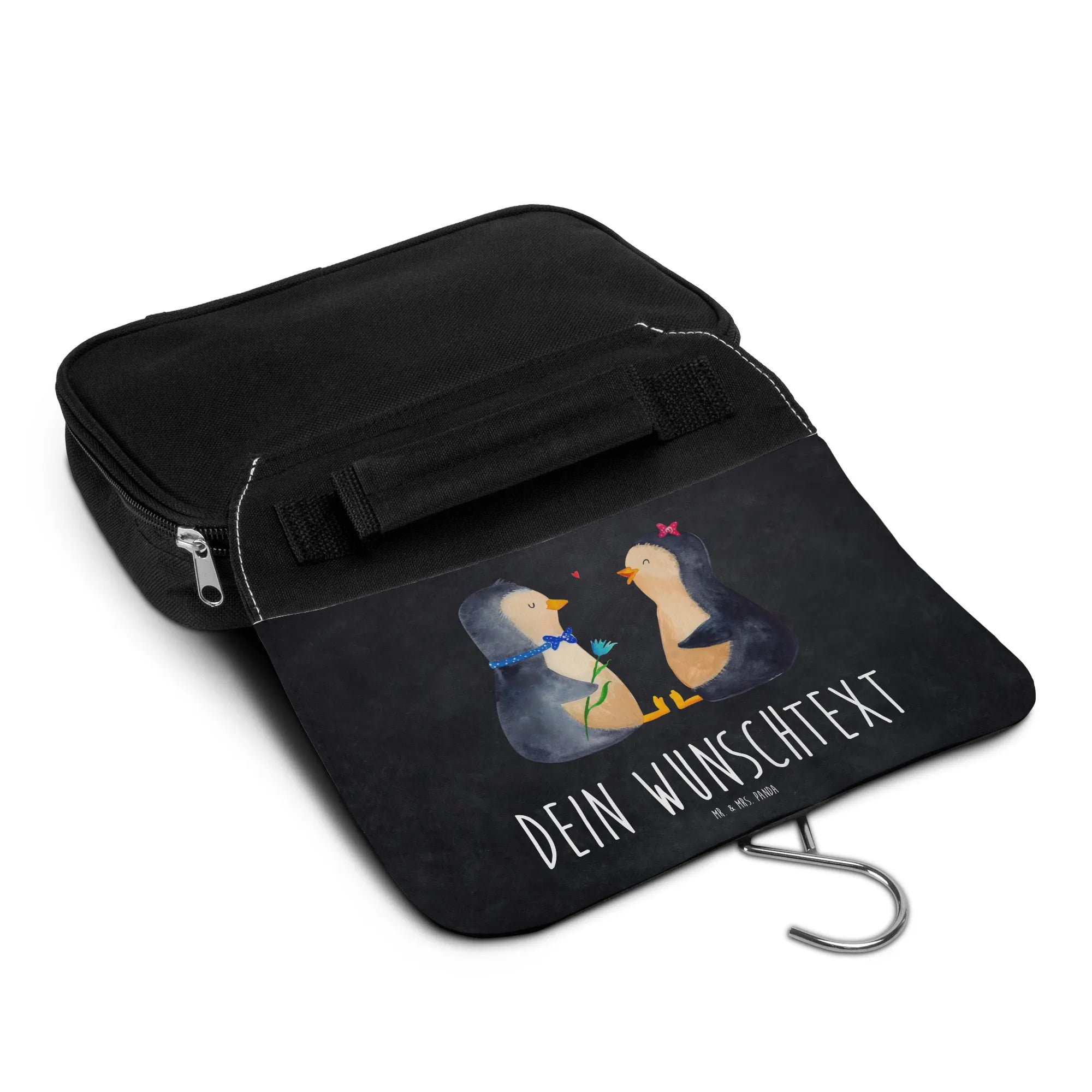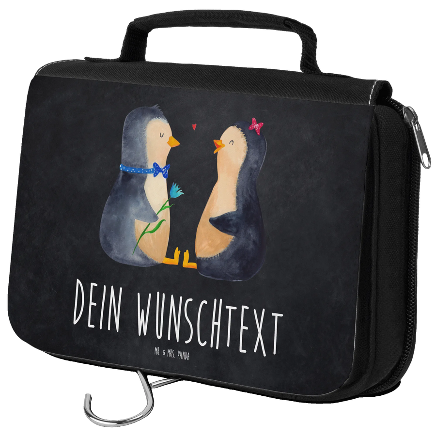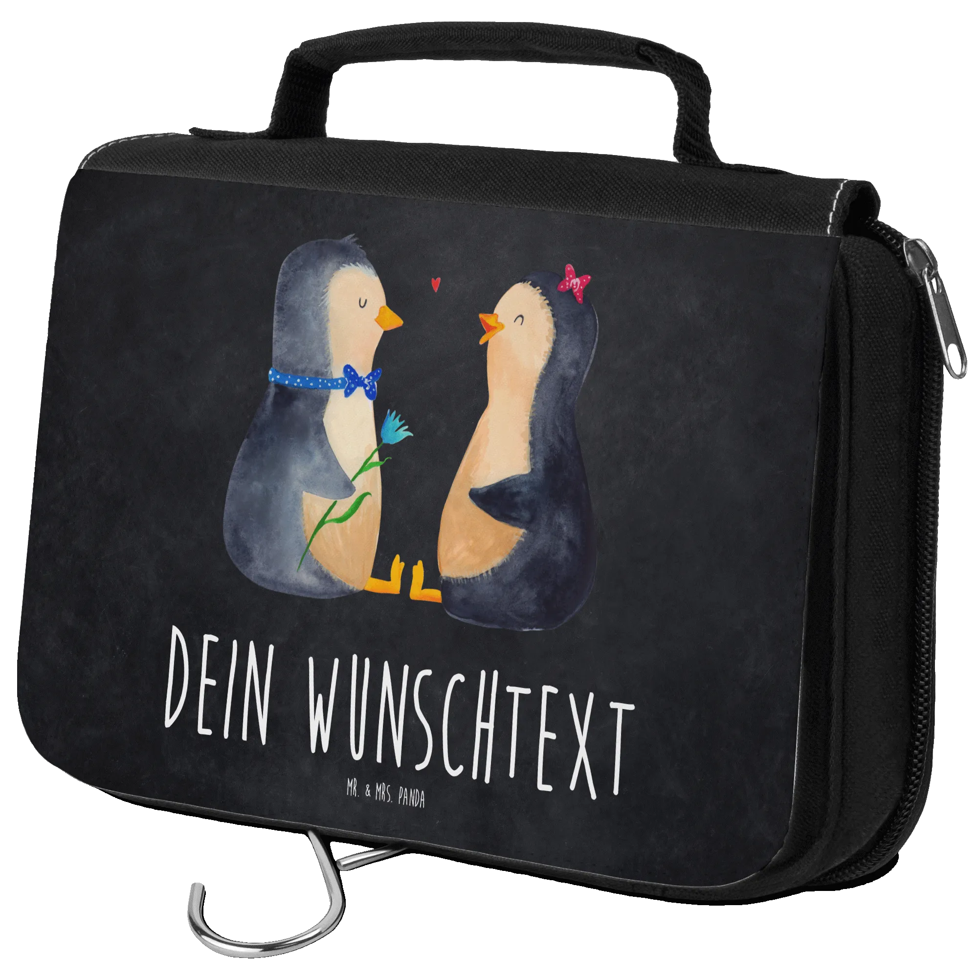 Personalisierter Kulturbeutel Pinguin Pärchen - Kreidetafel