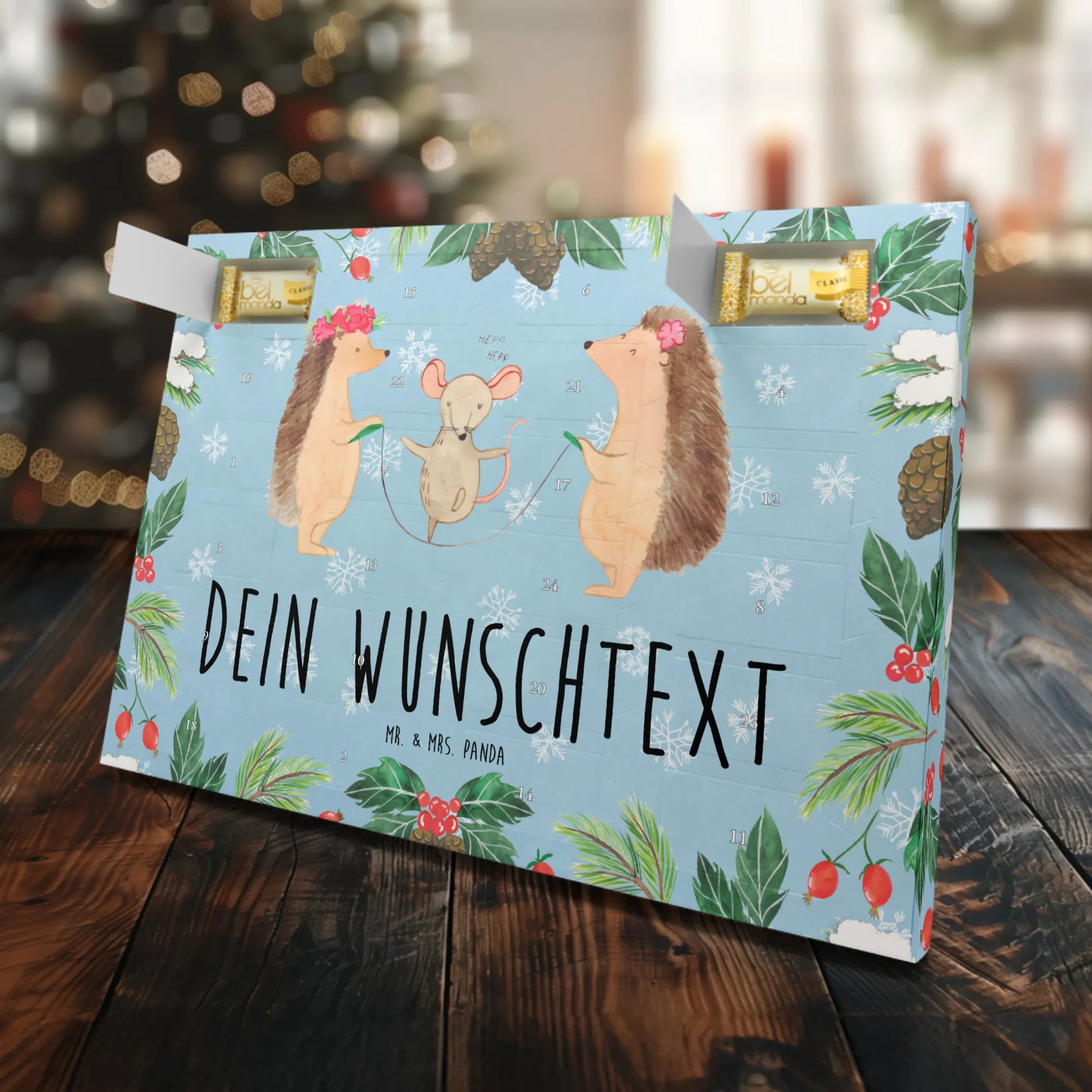 Der personalisierte Marzipan Adventskalender mit dem süßen Igelpaar und der fröhlichen Maus ist ein wunderbares Produkt von Mr. & Mrs. Panda, das nicht nur köstliches Naschen verspricht, sondern auch eine herzliche Botschaft vermittelt: Gemeinsam macht alles mehr Spaß!