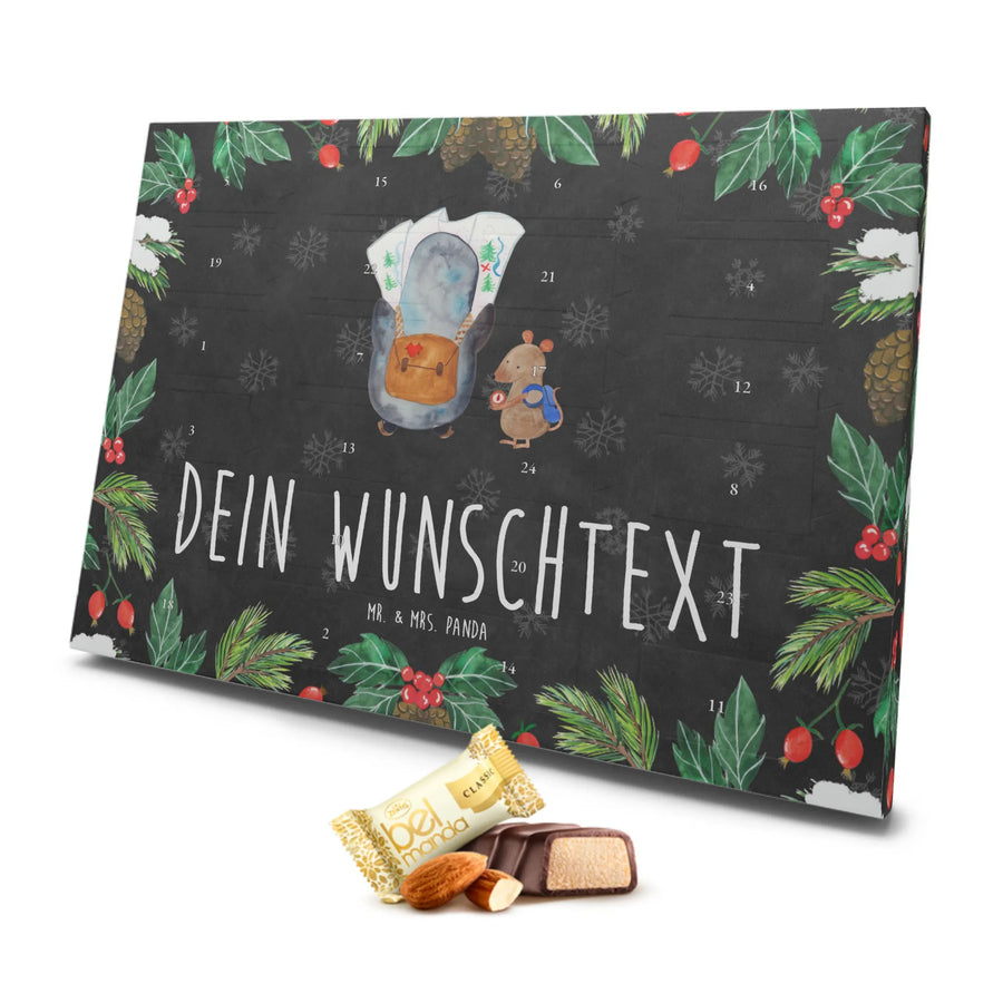 Personalisierter Marzipan Adventskalender Pinguin & Maus Wanderer - Schwarz