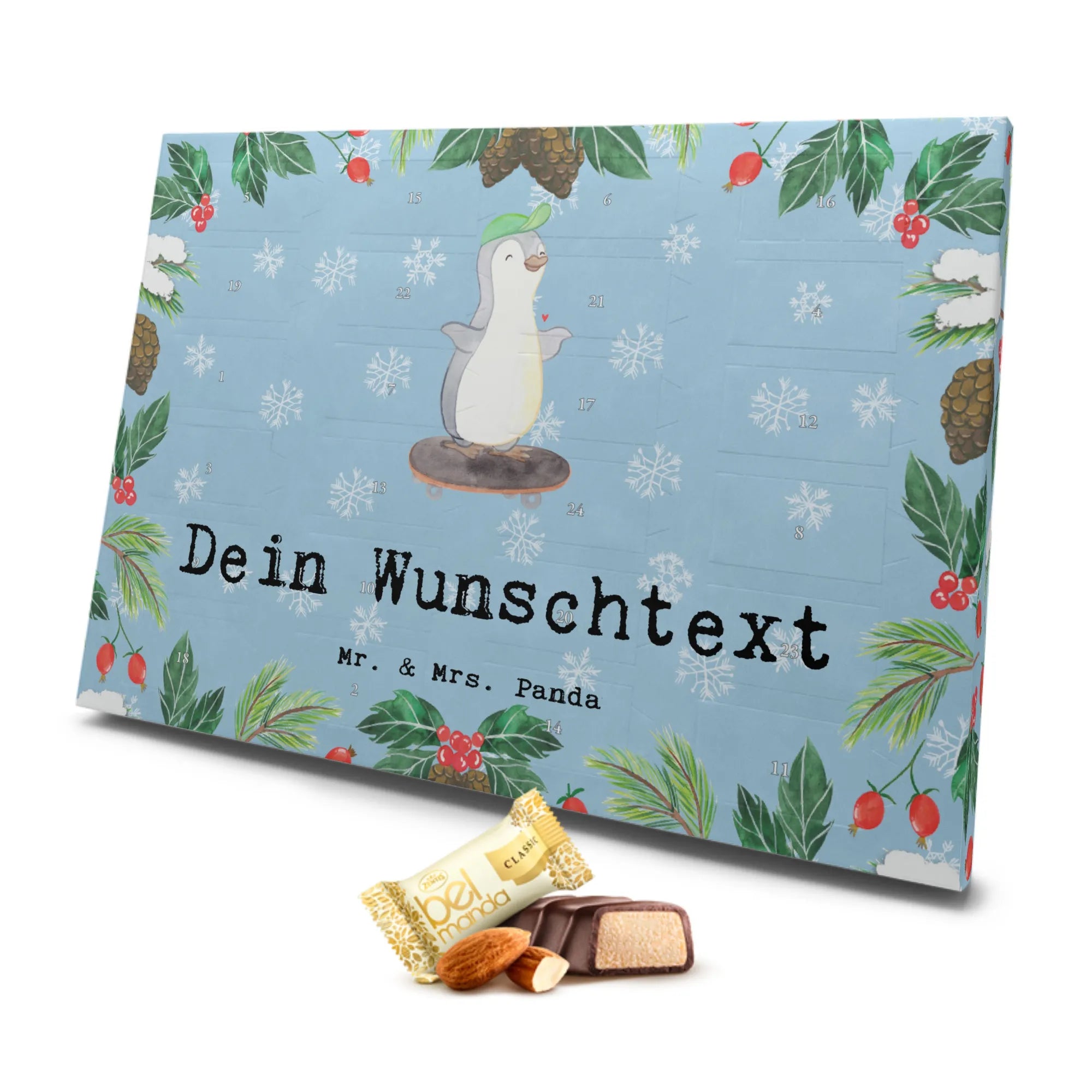 Personalisierter Marzipan Adventskalender Pinguin Skateboarden - Schwarz