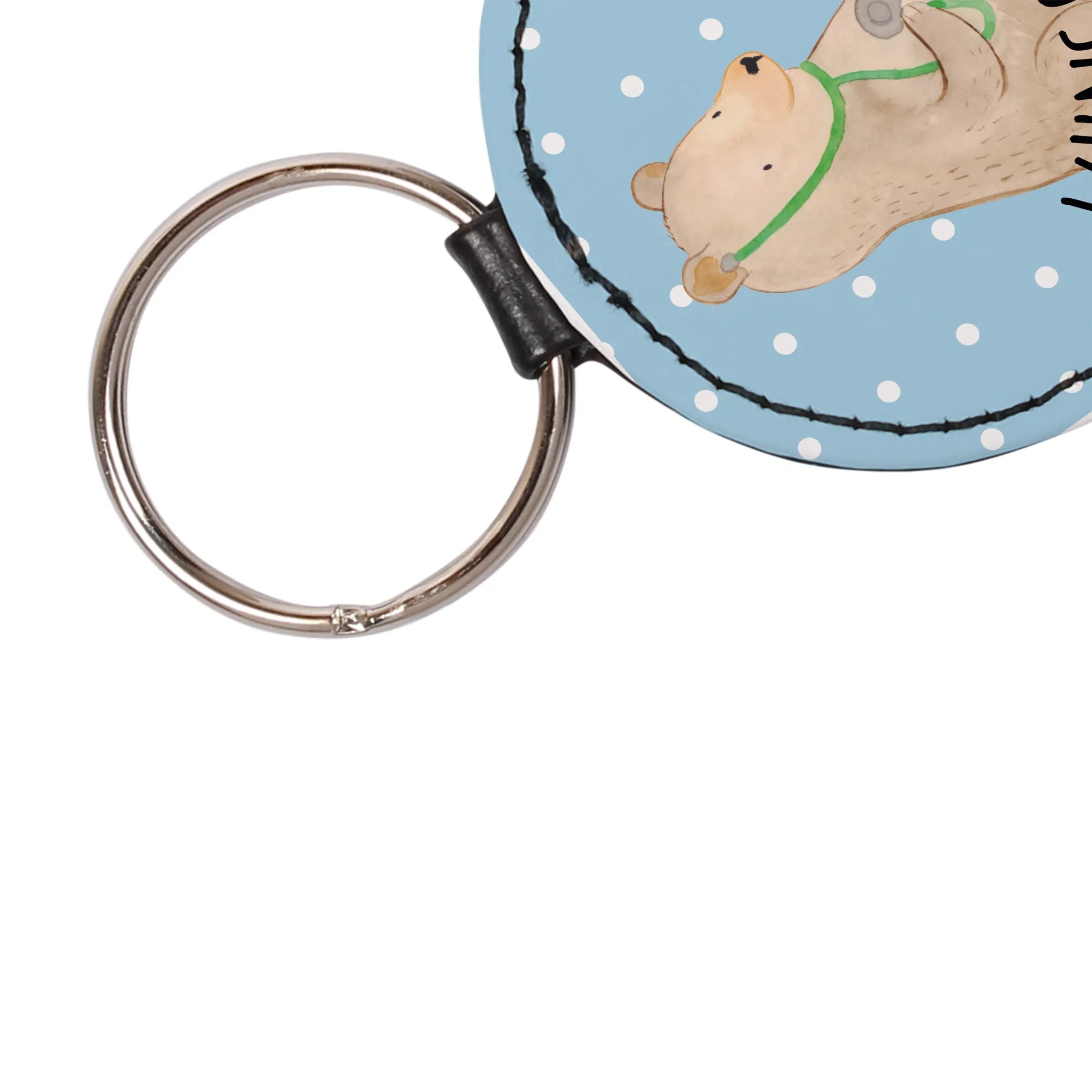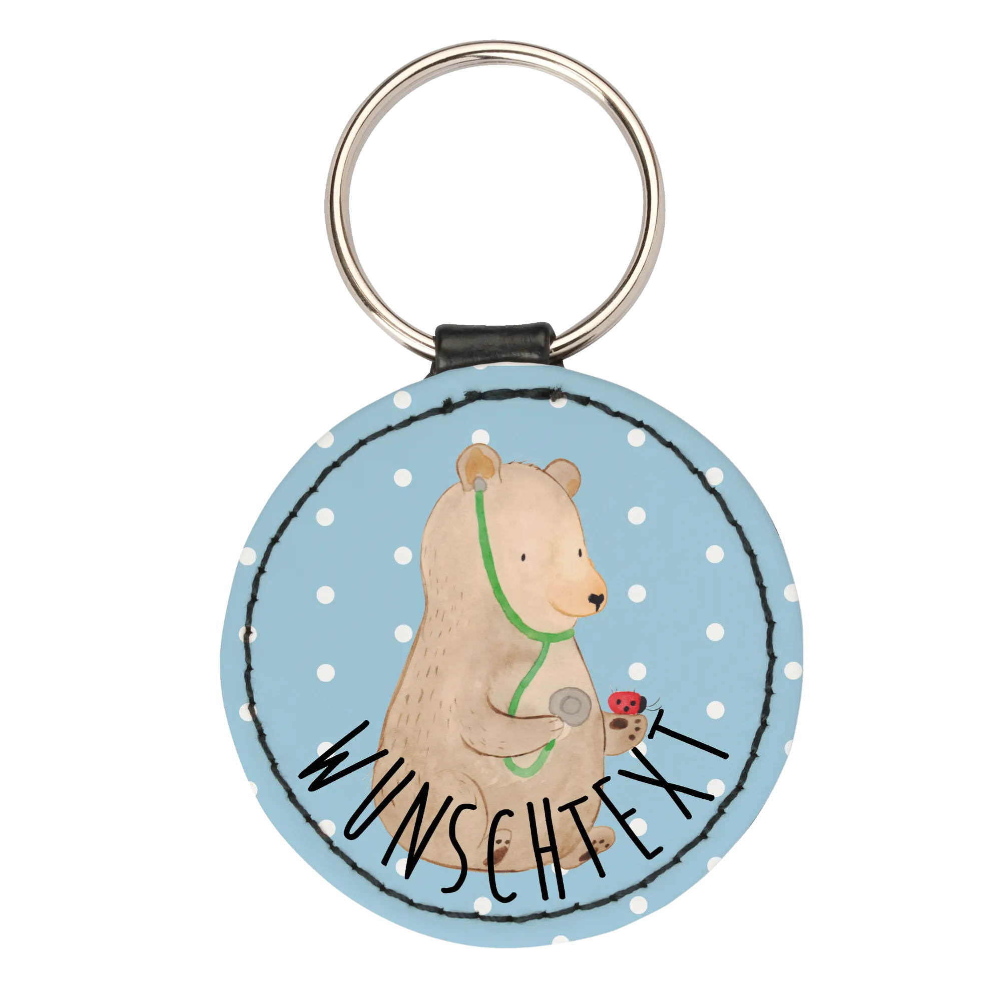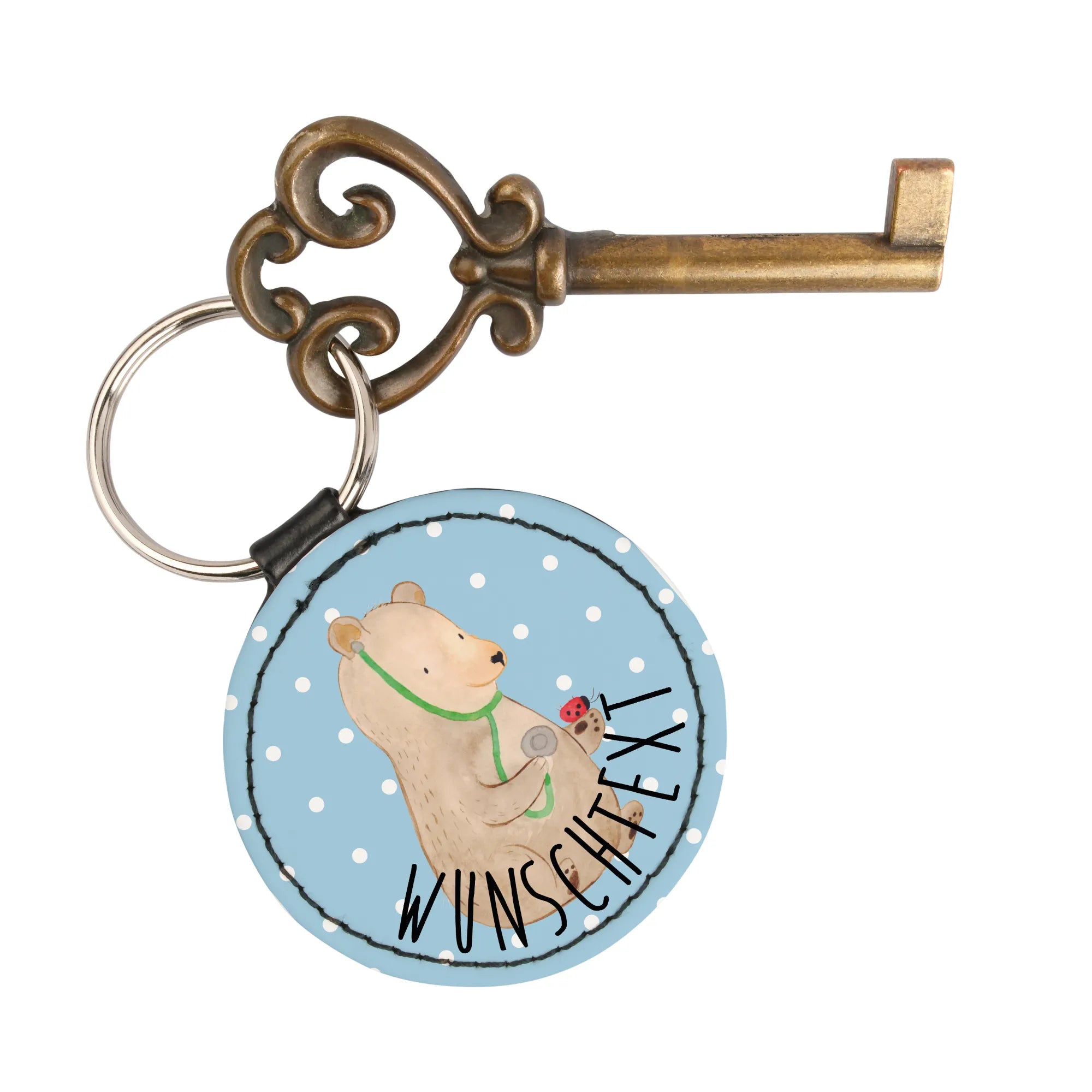 Der personalisierte Schlüsselanhänger mit dem süßen Motiv des Bären Arztes ist das perfekte Geschenk für all jene, die das Besondere lieben. Egal ob für die eigene Sammlung oder zum Verschenken an Freunde, Bekannte oder liebe Angehörige, dieser Schlüsselanhänger wird sicher ein Lächeln auf jedes Gesicht zaubern. Der Bär, der einen kleinen Marienkäfer behandelt, ist nicht nur niedlich, sondern auch ein toller Glücksbringer oder Schutzengel aus der beliebten Bären-Kollektion von Mr. & Mrs. Panda.